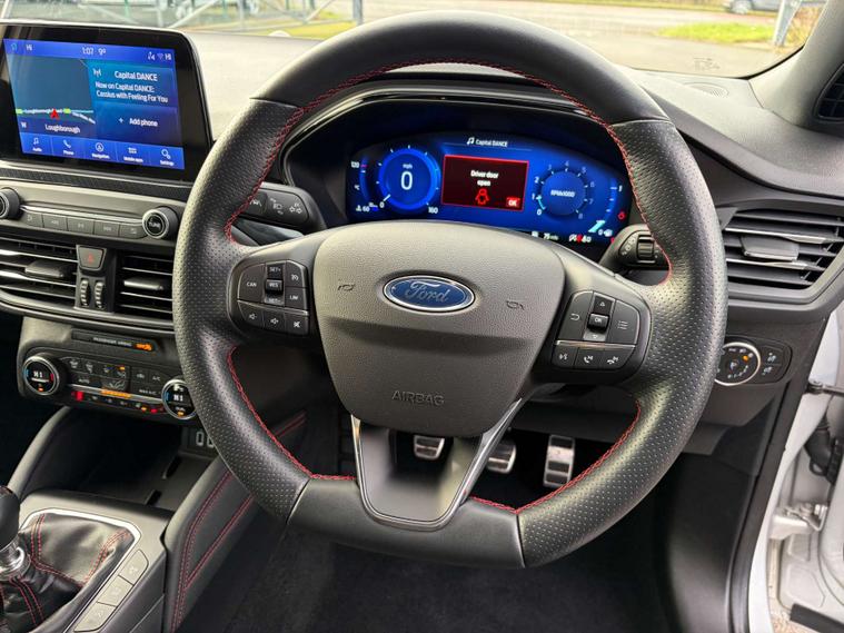 This 2021 Ford Focus ST-Line X Edition presents a compelling proposition with its remarkably low mileage of just 33, 150 miles for its age. This particular model is equipped with a 1.0 litre petrol engine and meets Euro 6 emissions standards. Inside, you'll find a heated steering wheel for added comfort, a Ford SYNC3 DAB Navigation System complete with Android Auto and Apple CarPlay for seamless connectivity, and Bluetooth. The Ford Key Free System allows for effortless keyless entry and start, while wireless charging keeps your devices powered up. The vehicle also features fixed LED headlamps for excellent visibility.
