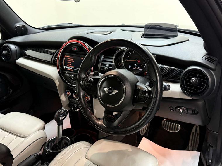 ONLY 39, 000 MILES !!! - HUGE SPECIFICATION - STUNNING COLOUR COMBINATION - IMPECCABLE EXAMPLE - HPI CLEAR - FULL UP TO DATE SERVICE HISTORY - UP TO 36 MONTHS WARRANTY AVAILABLE - NATIONWIDE DELIVERY AVAILABLE - PART EXCHANGE WELCOME - OPEN 7 DAYS A WEEK - CALL US DIRECT ON 01582232989 - finished in stunning gleaming metallic midnight black paintwork, complimented with contrasting full cream leather interior, Refinements include, remote central locking, electric windows, electric heated power folding mirrors, leather trimmed JCW steering wheel with paddle shifts, full cream leather interior, adjustable steering column, keyless push button start stop, dual zone digital climate control, heated seats, heated front windscreen, heads up display, wide screen infotainment display, sat nav, enhanced bluetooth, usb aux ports, Harmon Kardon sound system, reverse camera and parking sensors, auto headlights, auto wipers, LED headlights, cornering lights, cruise control, auto dim rear view mirror, centre armrest, isofix, air bags, 18 inch 2 tone cup spoke alloy wheels, full JCW exterior pack, JCW chilli pack, alarm and immobiliser. What a beautiful low mileage example!! In a beautiful colour combination with a huge spectrum and low mileage which is backed up by a full service history which comprises of 6 Mini main dealer services with the recent full service carried out by AA. An impeccable example, drives like a new car, call now to reserve or view.