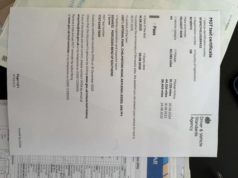 Discover the Peugeot 3008, combining elegant design with impressive performance. With only 62, 000 miles and just two careful owners, this is a vehicle that has clearly been well looked after. The cambelt and water pump have recently been replaced, it benefits from a strong service history, a long MOT, and it comes with two keys.
