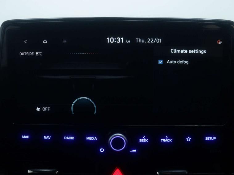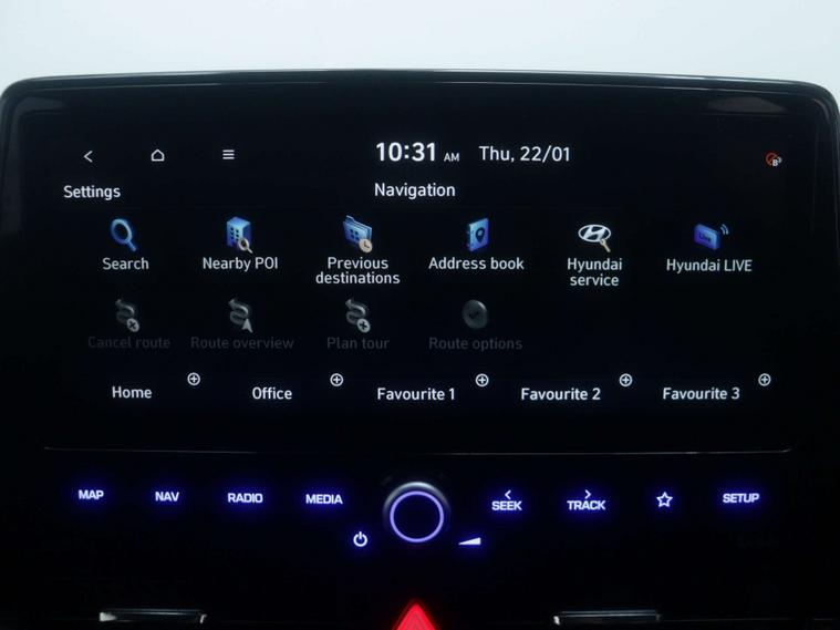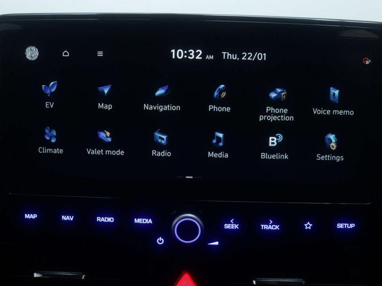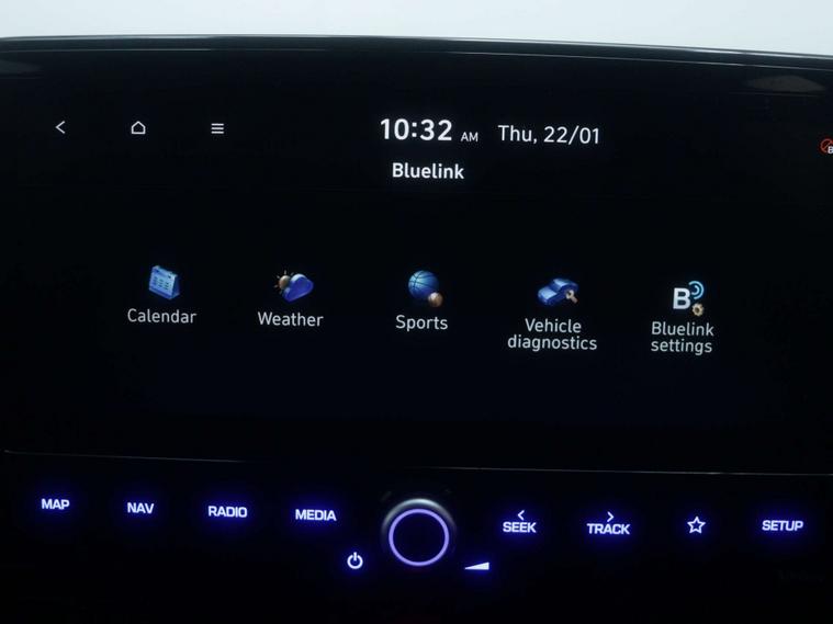 features Include –10.25in Widescreen Navigation with Bluelink and Mapcare, Phone Connection - Android Auto - Apple CarPlay, Wireless Phone Charging Pad, Speakers - Infinity Sound System - 1 Centre - 2 Tweeters - 2 Front - 2 Rear - 1 Subwoofer and 1 Ext. Amp, Cruise Control - Smart Adaptive Speed Control with Stop and Go Function, Lane Departure Warning System with Lane Keeping Assist, Parking System - Rear Camera and Guidance System, Door Mirrors - Electric Adjustment and Heated with Power Fold, Air Conditioning - Single Zone Climate Control, Heated Steering Wheel, 16in Alloy Wheels