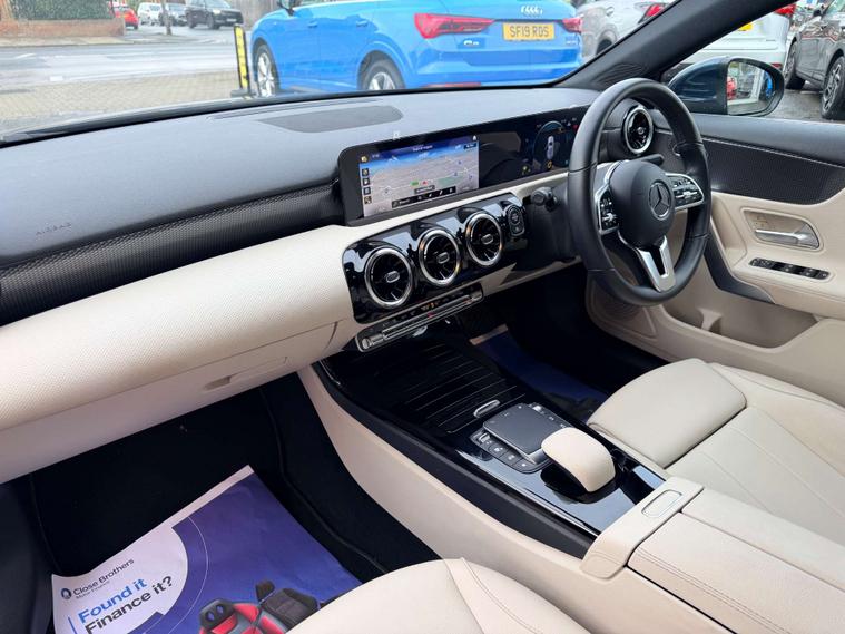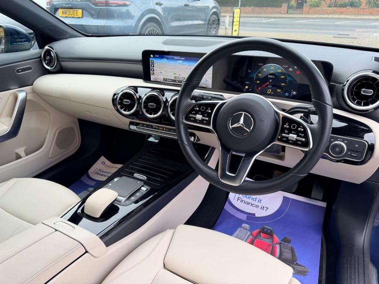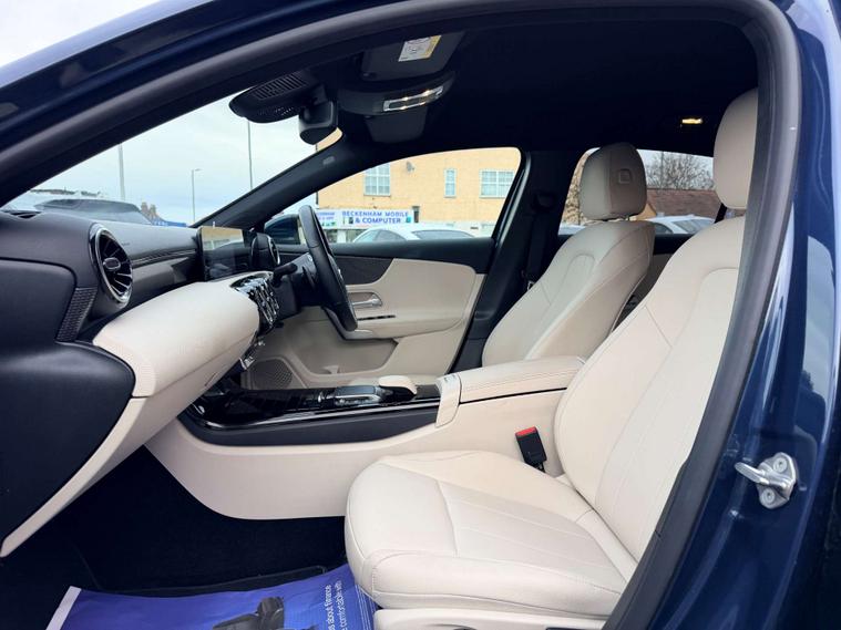 Finished in a striking Denim Blue, this A-Class exudes sophistication and style, turning heads wherever it goes. The interior is equally impressive, featuring Artico Leather in a chic Macchiato Beige and Black combination, offering both comfort and elegance.