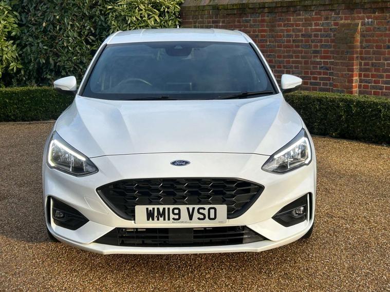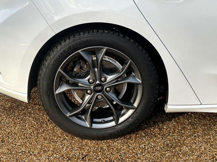 Finished in a sleek and sophisticated white, the Ford Focus exudes a modern and sporty appeal that is sure to turn heads wherever you go. Its dynamic design is complemented by the ST-Line's distinctive features, ensuring you make a statement on the road.