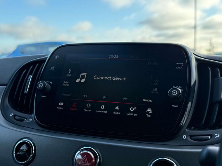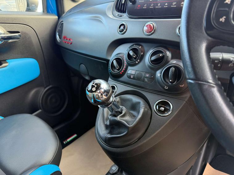 Dressed in the striking Electronica Blue, this Fiat 500 is sure to turn heads wherever it goes. Its vibrant hue is perfectly complemented by the Sport Fabric interior in Black-Blue, creating a sophisticated and sporty ambience that makes every journey a delight.