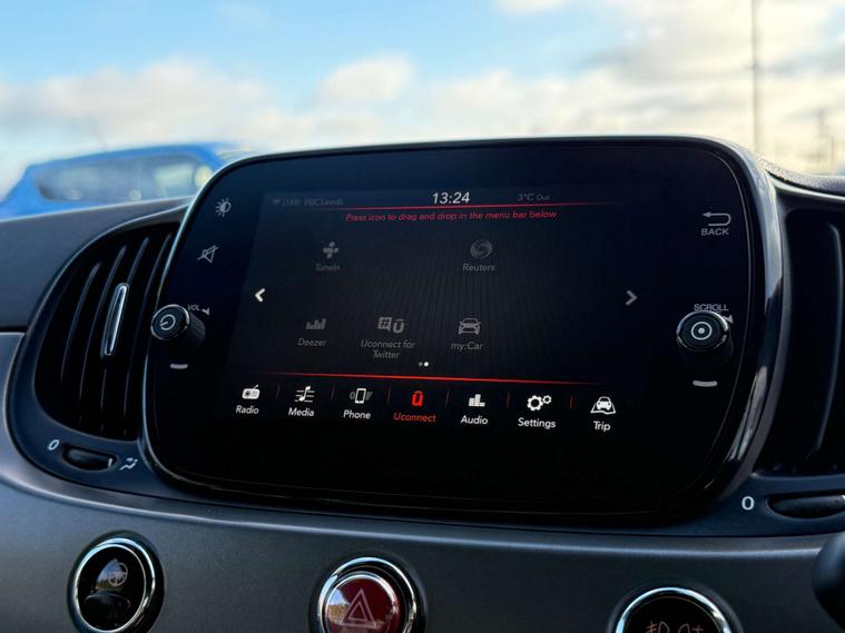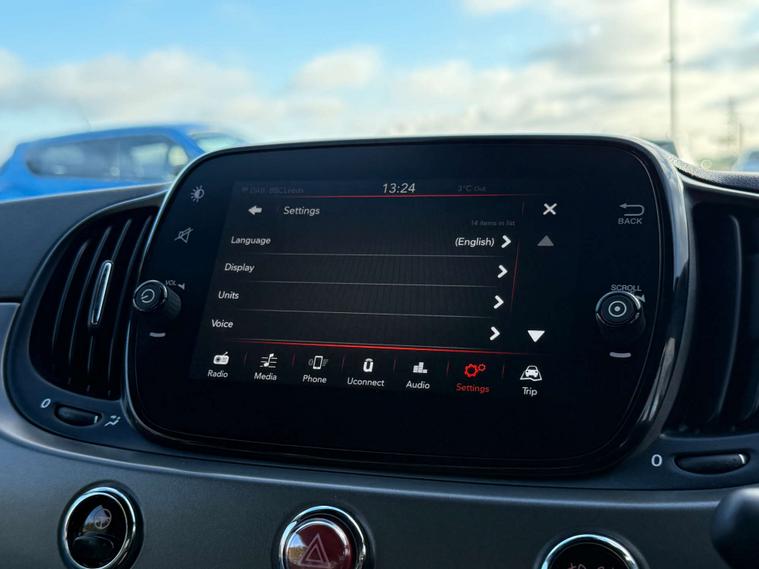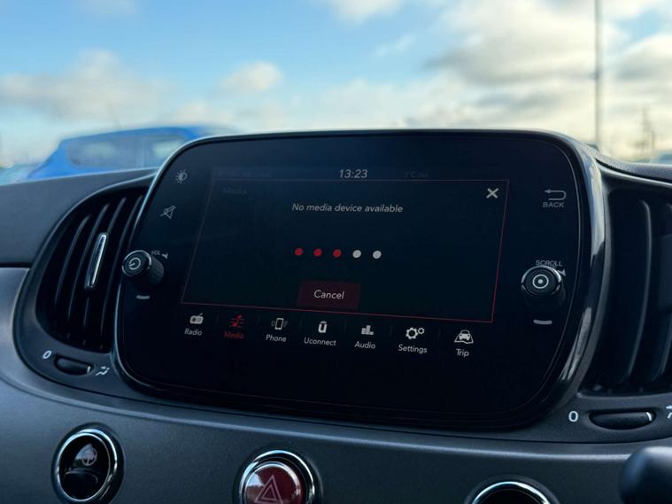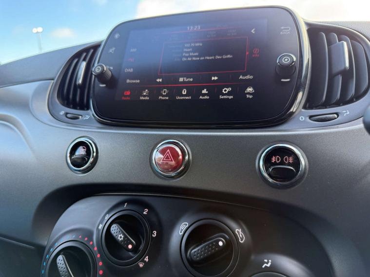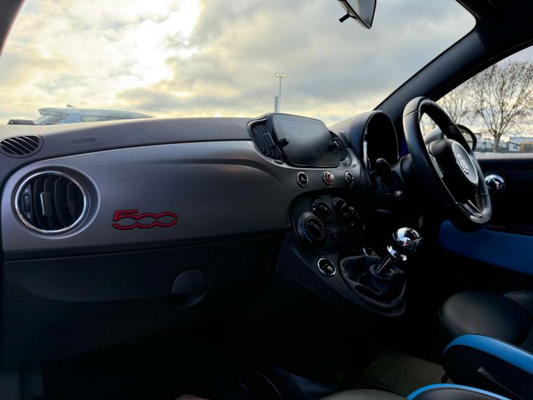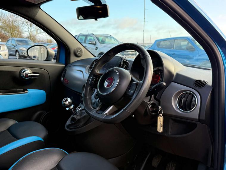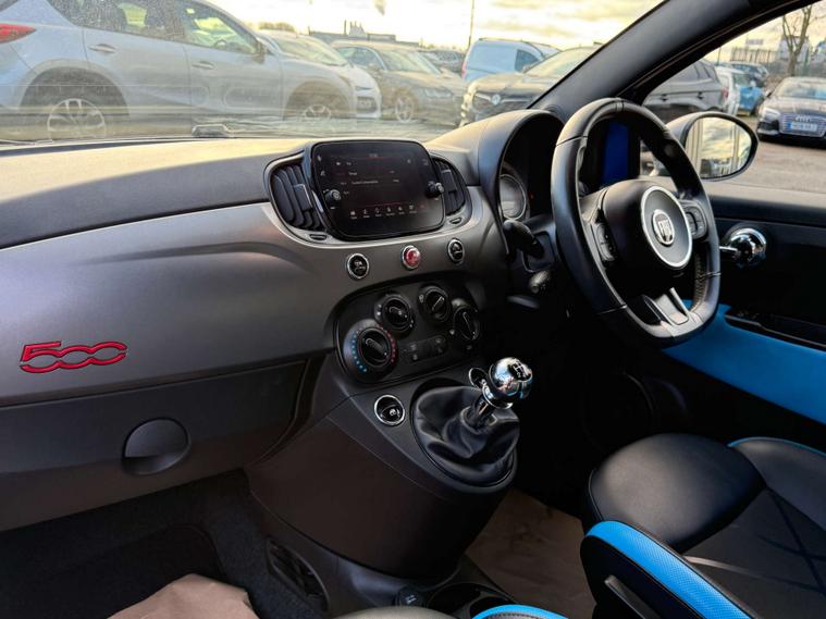 Step inside and experience the perfect blend of comfort and style. The black ambience adds a touch of elegance, while the sporty seats provide the support you need for those longer drives. Whether you’re navigating city streets or cruising through the countryside, the Fiat 500 offers a driving experience that’s both exhilarating and efficient.