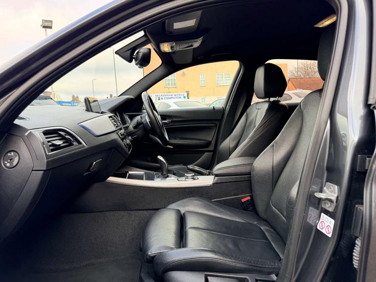 Finished in a sleek Mineral Grey, the Bmw 1 Series exudes an understated elegance that is sure to turn heads wherever you go. Step inside, and you'll be enveloped in luxury with the Dakota Leather seats in classic black, perfectly complementing the refined black interior.