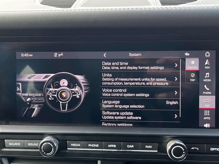 Draped in an elegant Volcano Grey metallic finish, this Porsche Macan is more than just a vehicle; it's a statement. The Metallic Paint gleams with a refined sheen, ensuring you turn heads wherever you go. The 19-inch Macan Turbo Wheels add a touch of sportiness, perfectly complementing the vehicle's dynamic stance.