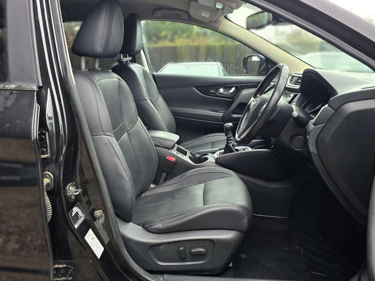 Introducing the Nissan Qashqai, a stylish and versatile SUV that's ready to take on any adventure. With a sleek Black finish and luxurious Leather - Graphite interior, this Qashqai is sure to turn heads wherever you go.