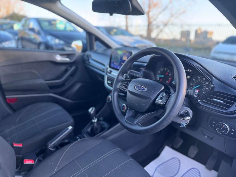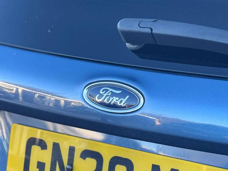 The interior is trimmed in high quality materials finished in a 2 tone grey with white and blue stitches, there is a large touch screen display unit which features full colour screen, driving modes and vehicle settings, sat nav and apple car play, DAB radio, bluetooth telephone connectivity. The vehicle also has many driving assisting features such as automatic lights, lane assist and cruise control. In summary, a very very desirable and great looking car. Low running costs, matched with Fords awesome reputation for quality and innovation.