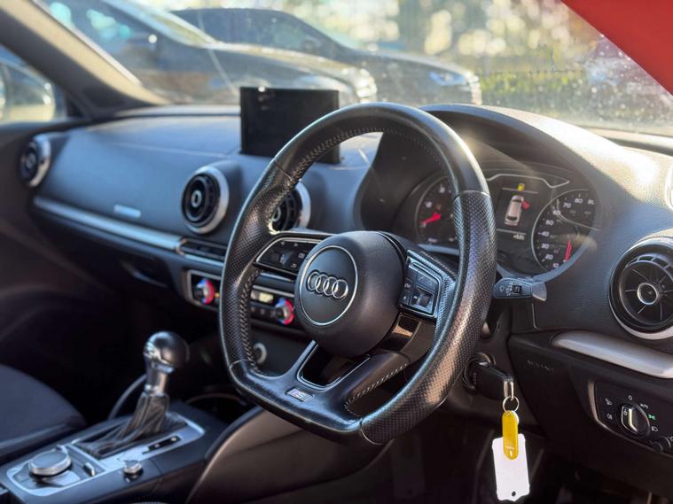 The Audi A3 is crafted for those who appreciate the finer things in life. Its striking black finish exudes an aura of elegance and power, ensuring you turn heads wherever you go. The S line trim adds a sporty edge, with distinctive features that set it apart from the crowd.