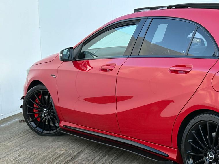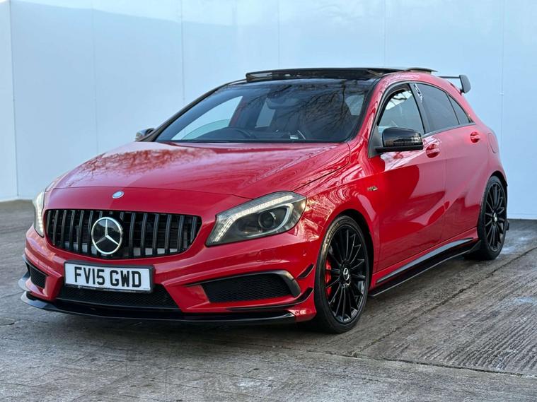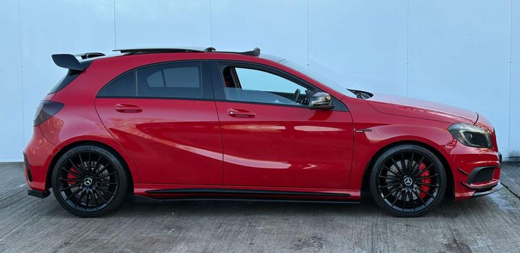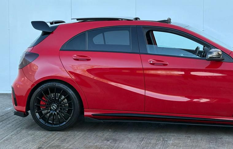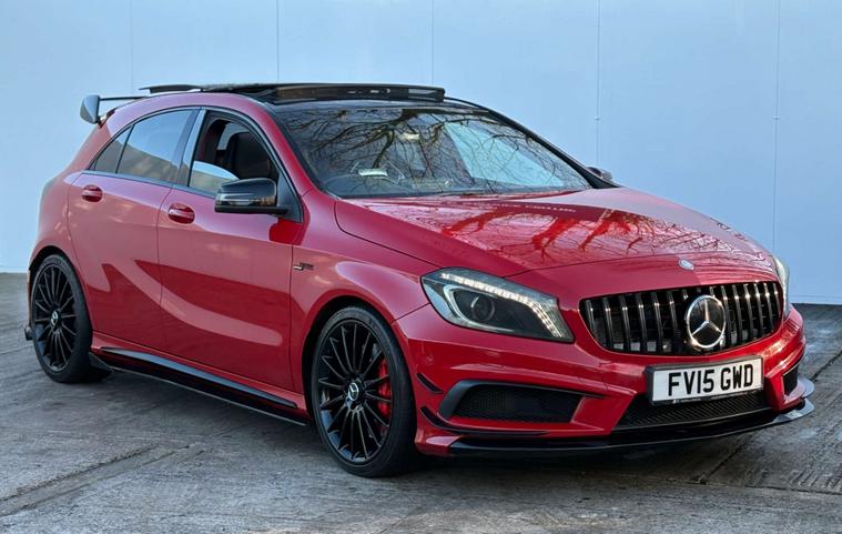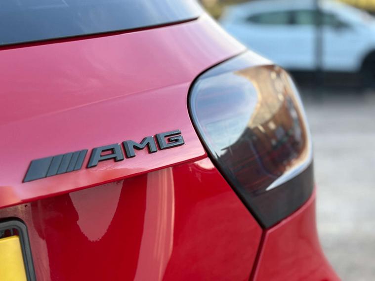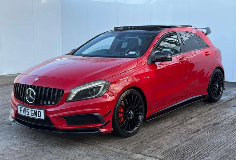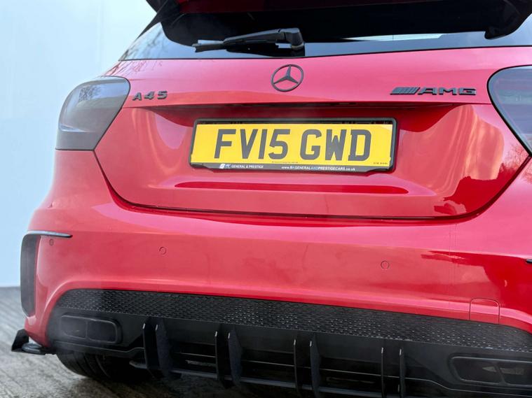 Here at BK General and Prestige Cars in Leeds we are pleased to offer this stunning Mercedes-Benz A-Class 2.0 A45 AMG 4Matic Auto 4WD 5dr – where performance meets luxury in a stunning package. This exquisite vehicle, finished in the striking Jupiter Red, is designed to turn heads and deliver an unparalleled driving experience.