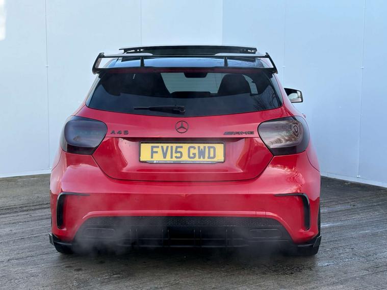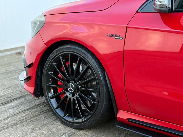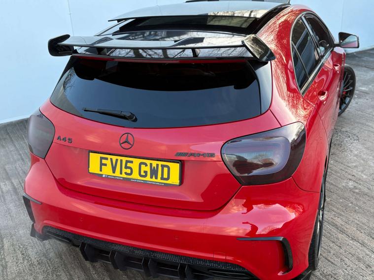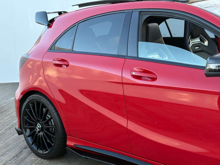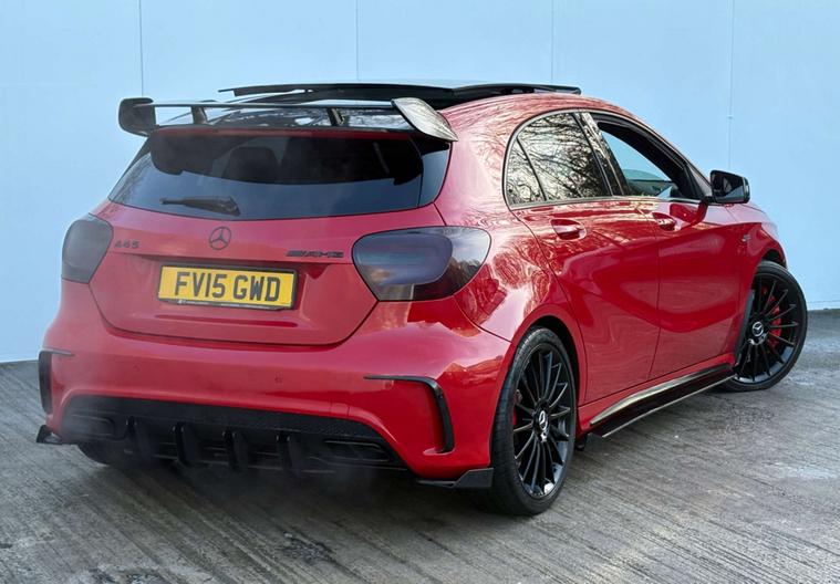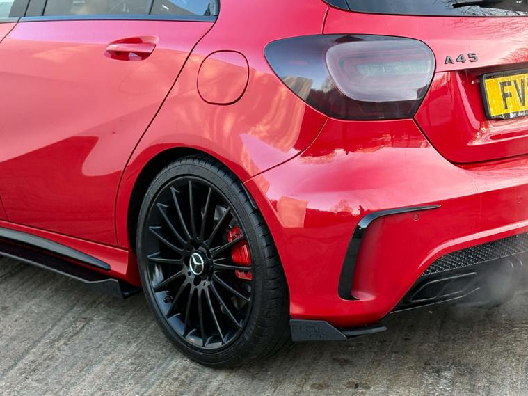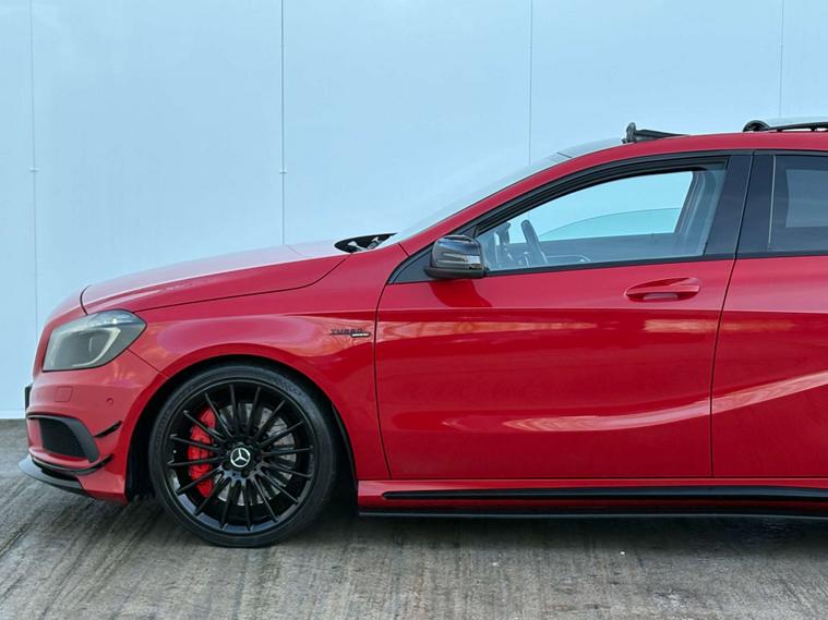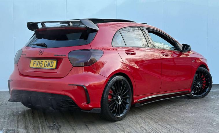 Here at BK General and Prestige Cars in Leeds we are pleased to offer this stunning Mercedes-Benz A-Class 2.0 A45 AMG 4Matic Auto 4WD 5dr – where performance meets luxury in a stunning package. This exquisite vehicle, finished in the striking Jupiter Red, is designed to turn heads and deliver an unparalleled driving experience.