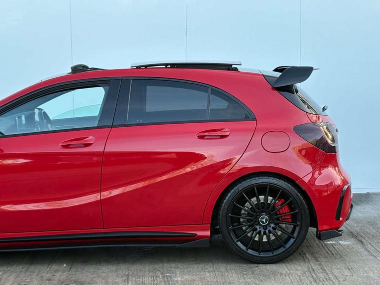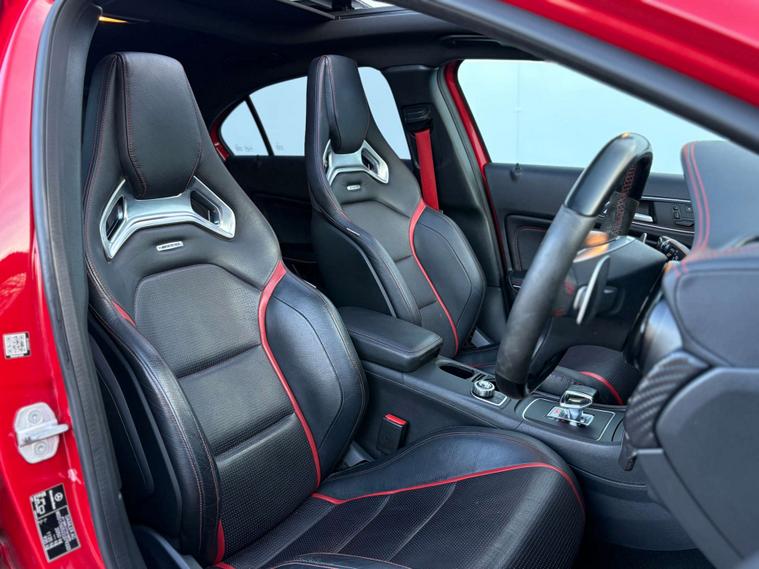 Under the bonnet, the AMG Performance exhaust system ensures that the A-Class sounds as powerful as it feels, while the 4Matic all-wheel drive system provides exceptional handling and control. The panoramic sliding sunroof floods the cabin with natural light, enhancing every journey.