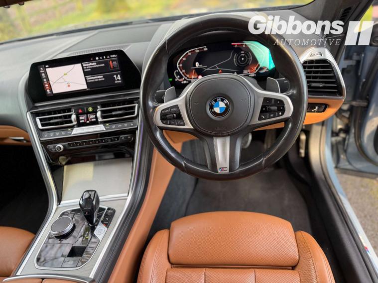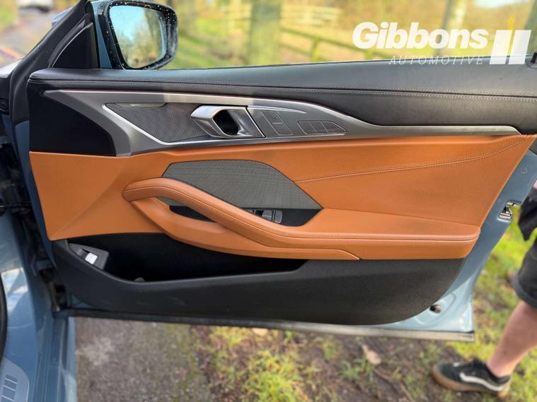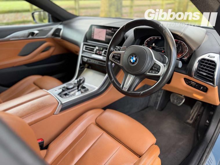 Finished in a sleek Blue exterior, this BMW 8 Series comes with a range of extras that elevate its style and comfort. The BMW Individual Extended Merino Leather interior in Cognac-Black exudes sophistication, while the Barcelona Blue accents add a touch of elegance. The Sun Protection Glazing ensures a cool and comfortable ride even on the sunniest days.
