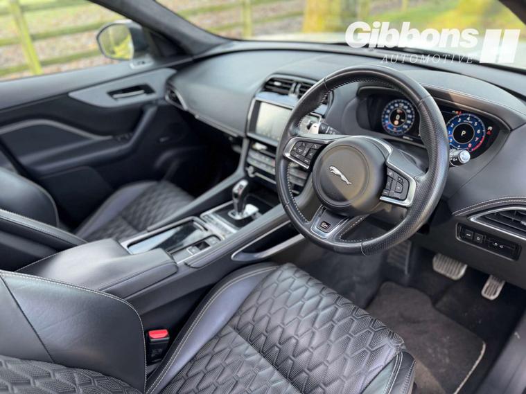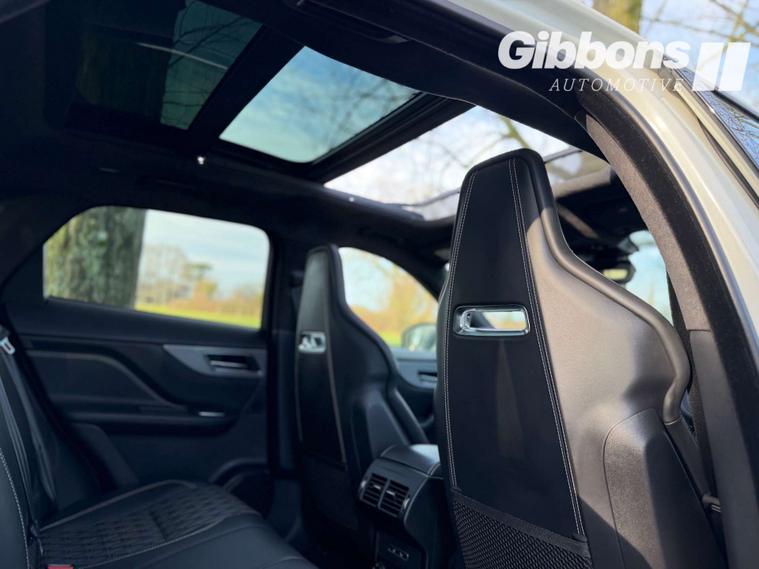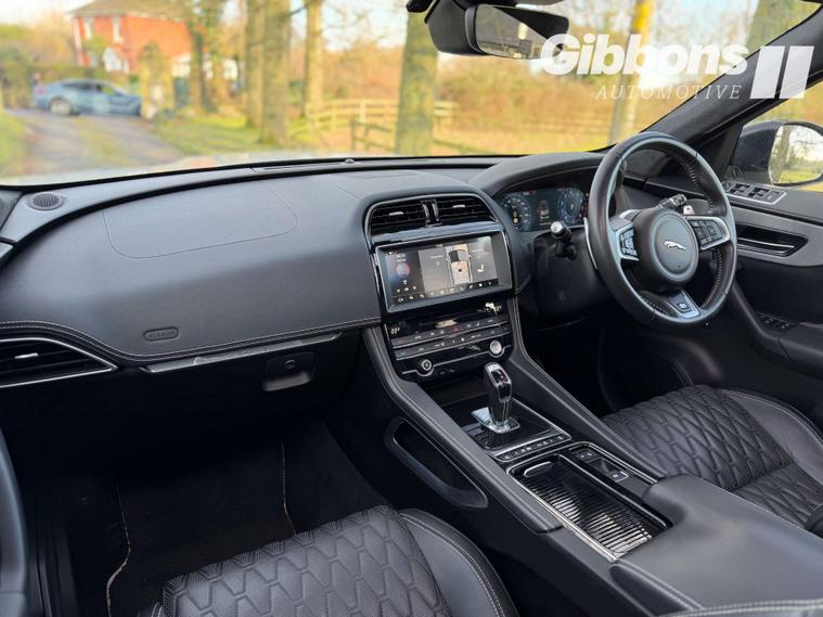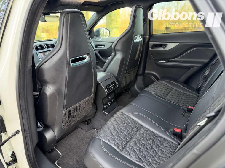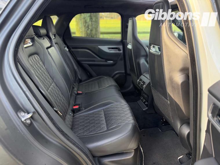 Equipped with SVR Reduced Section Alloy Spare Wheel, 22in Alloy Wheels with Gloss Black Finish, Detachable Tow Bar, Air Quality Sensor, and 4-Zone Climate Control, this Jaguar F-Pace is designed to impress.
