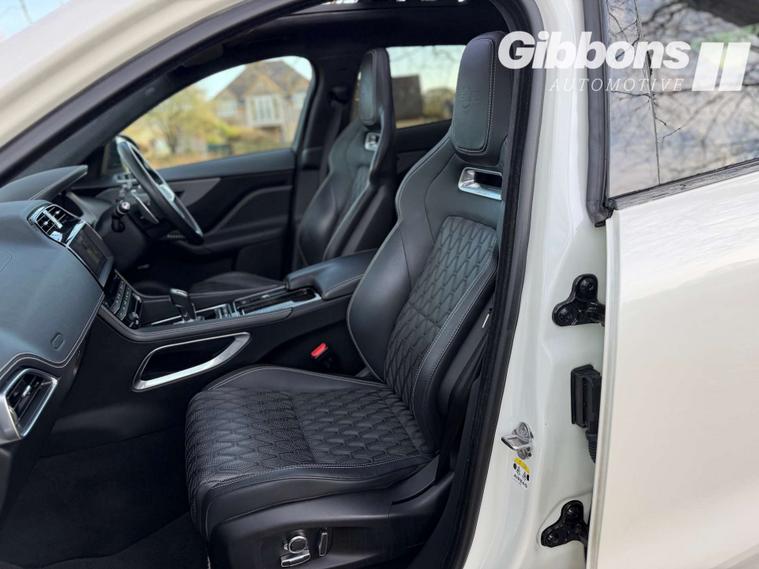 Step inside and feel the comfort of the Lozenge Quilted Leather seats in Ebony-Ebony. This Jaguar F-Pace is the epitome of sophistication and performance, making every drive a memorable one.