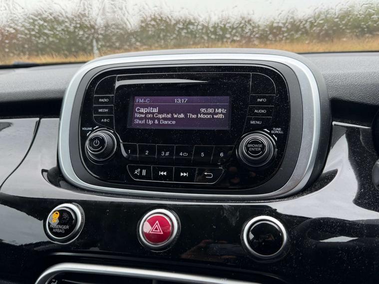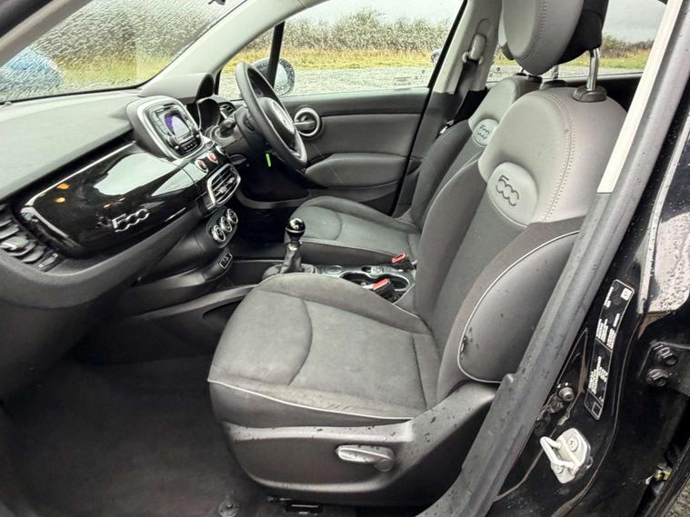 Finished in a sleek Cinema Black, the Fiat 500x exudes sophistication and elegance, turning heads wherever you go. Step inside to discover the refined interior, featuring Black Cloth seats with Grey Piping, offering both comfort and a touch of modern flair.