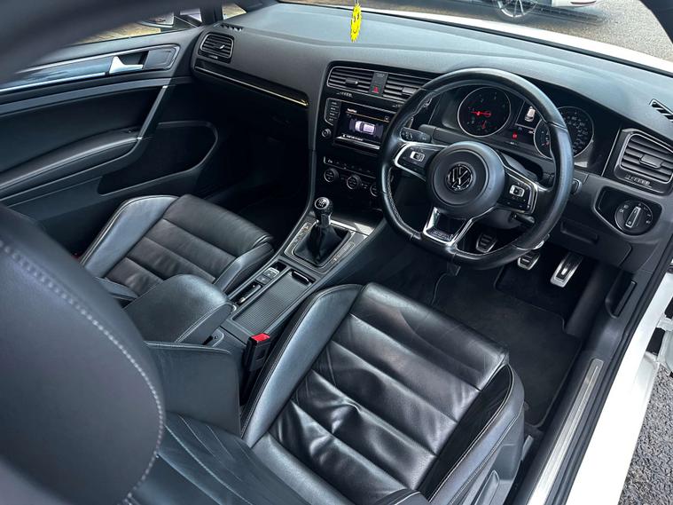White Gloss paint , black Alloy wheels , Black Golf R leather seats , Touchscreen display , Bluetooth, Radio, Heated Seats, A/C, Cruise control, Voice command system, Electric windows, Electric wing mirrors, Park pilot assist , multifunctional steering wheel , ISO fix , Front & Back seat armrest, Auto Headlights. Loads more!