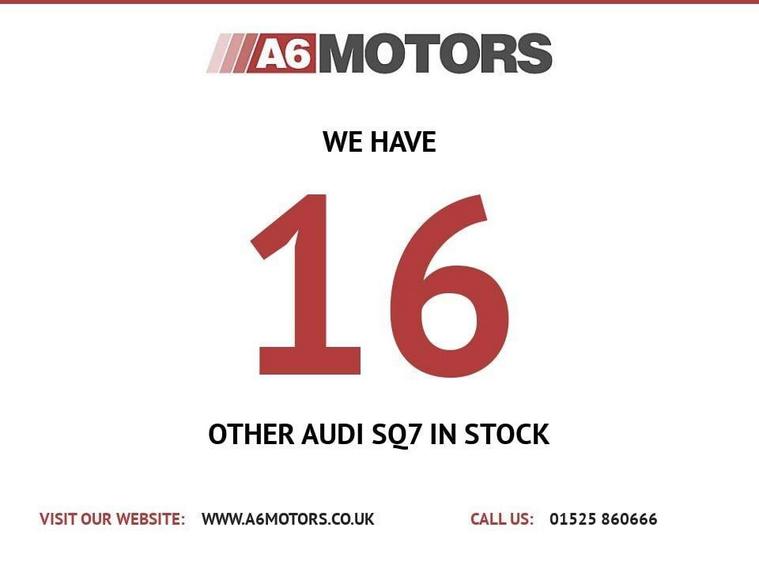 STUNNING AUDI SQ7 FINISHED IN DAYTONA GREY BOASTING HUGE SPEC FROM FACTORY INCLUDING REAR ENTERTAINMENT, AMBIENT LIGHTING, ADAPTIVE CRUISE CONTROL, MATRIX LED, HEAD UP DISPLAY, BOSE SURROUND SOUND, PANORAMIC ROOF, CARBON INLAYS, DYNAMIC PACK AND MUCH MORE. LOVELY CONDITION THROUGHOUT. LOOKS SLEEK WITH THE MAXTON DESIGN KIT & SIDE STEPS AND MUST BE SEEN TO BE FULLY APPRECIATED! HERE AT A6 MOTORS WE PRIDE TO DELIVER GREAT CARS & A BETTER SERVICE. WE HAND PICK OUR CARS AND THEY ARE SUBJECT TO DETAILED CHECKS PRIOR TO SALE.WE ALSO PROVIDE A LONG MOT SO BUY WITH CONFIDENCE. 6, 12, 24 & 36 MONTHS EXTENDABLE WARRANTY AVAILABLE & THE OPTION OF DRIVE AWAY INSURANCE. ALL DEALER FACILITY ARE OFFERED & WE ARE OPEN 7 DAYS A WEEK. GREAT FINANCE PACKAGE AVAILABLE SO PLEASE INQUIRE WITH US. WE HAVE A DEDICATED AFTER SALES TEAM TO ASSIST WITH POST SALE INQUIRIES. LOCATED CONVENIENTLY IN BARTON LE CLAY BETWEEN LUTON & BEDFORD ON THE A6 BARTON ROAD, MK45 4RA. WE ARE EASY ACCESIBLE VIA THE M1 MOTORWAY. WE AIM TO BE BEDFORDSHIRES MOST COMPETITIVE DEALERSHIP. FINANCE FROM A THIRD PARTY COMPANY WILL BE SUBJECT TO A £399 ADMINISTRATION FEE. PLEASE CONFIRM WITH A MEMBER OF STAFF FOR AN ACCURATE SPEC LIST AS THE DATA IS PULLED FROM AUTOTRADER AND NOT ALWAYS CORRECT