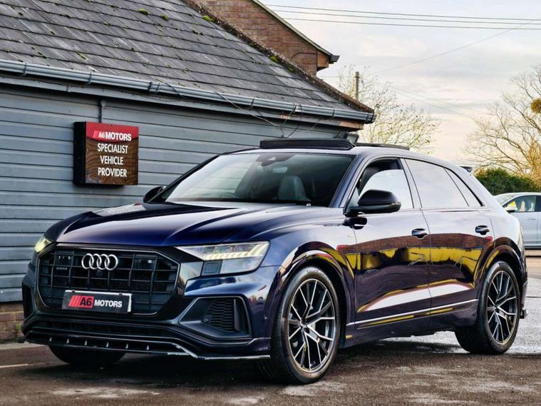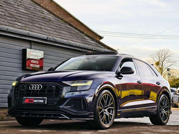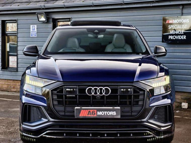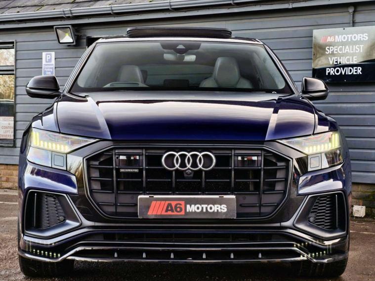 SAME DAY FINANCE AVAILABLE WITH £0 DEPOSIT. CALL OUR FINANCE TEAM FOR A QUOTATION TODAY. REQUEST A PERSONALISED VIDEO TODAY. STUNNING NAVARRA BLUE AUDI Q8 VORSPRUNG EDITION BOASTING A FULL SERVICE HISTORY & COMPLIMENTED BY A BIG FACTORY SPEC FURTHER BENEFITING FROM HAVING A MAXTON DESIGN BODYKIT FITTED. THIS LOVELY EXAMPLE IS SUPPLIED HPI CLEAR & WITH A NATIONWIDE WARRANTY. THE MOST RECENT SERVICE LESS TAN 500 MILES AGO. A WELL LOOKED AFTER EXAMPLE. DRIVES SPOT ON. GOOD TYRES ALL ROUND. BEING A VORSPRUNG MODEL IT IS FULLY LOADED. HERE AT A6 MOTORS WE PRIDE TO DELIVER GREAT CARS & A BETTER SERVICE. WE HAND PICK OUR CARS AND THEY ARE SUBJECT TO DETAILED CHECKS PRIOR TO SALE.WE ALSO PROVIDE A LONG MOT SO BUY WITH CONFIDENCE. 6, 12, 24 & 36 MONTHS EXTENDABLE WARRANTY AVAILABLE & THE OPTION OF DRIVE AWAY INSURANCE. ALL DEALER FACILITY ARE OFFERED & WE ARE OPEN 7 DAYS A WEEK. GREAT FINANCE PACKAGE AVAILABLE SO PLEASE INQUIRE WITH US. WE HAVE A DEDICATED AFTER SALES TEAM TO ASSIST WITH POST SALE INQUIRIES. LOCATED CONVENIENTLY IN BARTON LE CLAY BETWEEN LUTON & BEDFORD ON THE A6 BARTON ROAD, MK45 4RA. WE ARE EASY ACCESIBLE VIA THE M1 MOTORWAY. WE AIM TO BE BEDFORSHIRES MOST COMPETITIVE DEALERSHIP. FINANCE FROM A THIRD PARTY COMPANY WILL BE SUBJECT TO A £499 ADMINISTRATION FEE. PLEASE CONFIRM WITH A MEMBER OF STAFF FOR AN ACCURATE SPEC LIST AS THE DATA IS PULLED FROM AUTOTRADER AND NOT ALWAYS CORRECT.