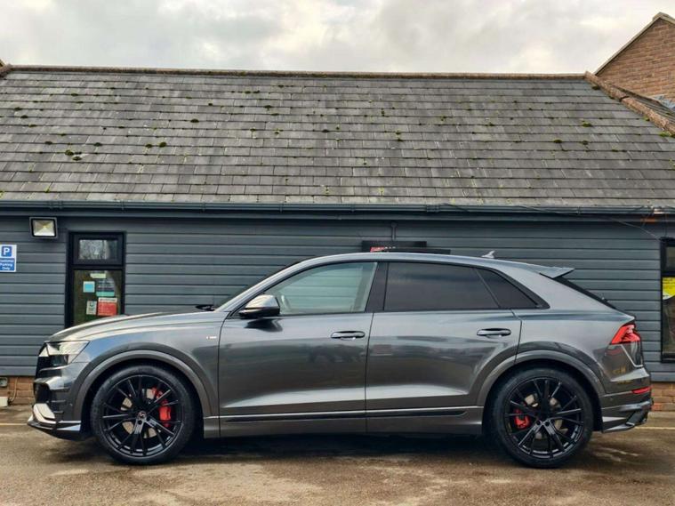 SAME DAY FINANCE AVAILABLE WITH £0 DEPOSIT. CALL OUR FINANCE TEAM FOR A QUOTATION TODAY. REQUEST A PERSONALISED VIDEO TODAY. STUNNING DAYTONA GREY AUDI Q8 WITH A STIRLING BODYKIT. BOASTING A BIG FACTORY SPEC. LOOKS THE PART. VERY SMART. DRIVES WELL. GOOD OVERALL CONDITION. SPECIFICATION INCLUDES PANORAMIC GLASS SUNROOF, 22" ALLOY WHEELS, PART LEATHER INTERIOR WITH FRONT HEATED SEATS & DRIVERS MEMORY, ELECTRIC FOLDING & HEATED WING MIRRORS, VIRTUAL COCKPIT, CRUISE CONTROL, COMFORT & SOUND PACKAGE WITH 360 CAMERA & BANG OLUFSEN SOUND SYSTEM, APPLE CAR PLAY, ADAPTIVE SUSPENSION, AMBIENT LIGHTING, SAT NAV, DAB, BLUETOOTH & MORE. SAME DAY FINANCE AVAILABLE WITH £0 DEPOSIT. CALL OUR FINANCE TEAM FOR A QUOTATION TODAY. REQUEST A PERSONALISED VIDEO TODAY. STUNNING AUDI Q8 S LINE BOASTING A BODYKIT & COMPLIMENTED BY A BIG FACTORY SPEC. THIS LOVELY EXAMPLE IS SUPPLIED HPI CLEAR & WITH A NATIONWIDE WARRANTY. GOOD CONDITION THROUGH OUT. DRIVES WELL. SPECIFICATION INCLUDES PANORAMIC GLASS SUNROOF, 22" ALLOY WHEELS, COMFORT & SOUND PACK WITH REVERSING & 360 CAMERA WITH BANG OLUFSEN SOUND SYSTEM, CITY ASSIST PACK, AMBIENT LIGHTING PACK, FRONT & REAR CROSS TRAFFIC ALERT RADAR & ANTI COLLISSION, SAT NAV, DAB, BLUETOOTH & MORE.