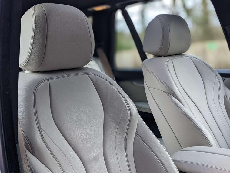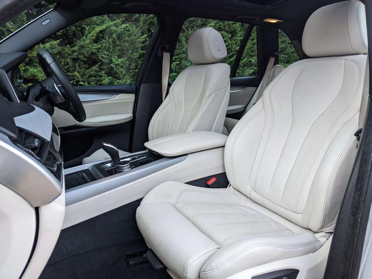 Finished in a sleek Silver exterior, this BMW X5 is sure to turn heads wherever you go. The Dakota Leather interior in Ivory White with Black accents exudes elegance and sophistication, while the Panoramic Glass Sunroof adds a touch of luxury to your driving experience.