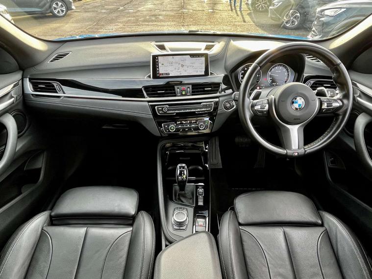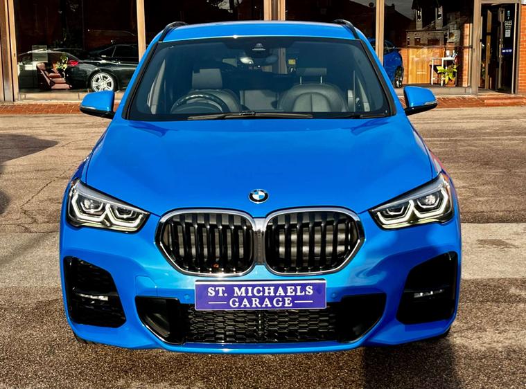 Finished in a sleek Blue exterior, this BMW X1 comes with a range of luxurious extras to enhance your driving experience. The interior boasts High-Gloss Black trim with Pearl Chrome Finisher, complemented by the striking Misano Blue Perforated Dakota Leather seats in Black with Grey Stitching.