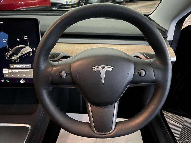 Finished in a striking black, the Tesla Model 3 exudes an air of elegance and sophistication, turning heads wherever it goes. Its aerodynamic design not only enhances its visual appeal but also maximises efficiency, ensuring you get the most out of every charge.