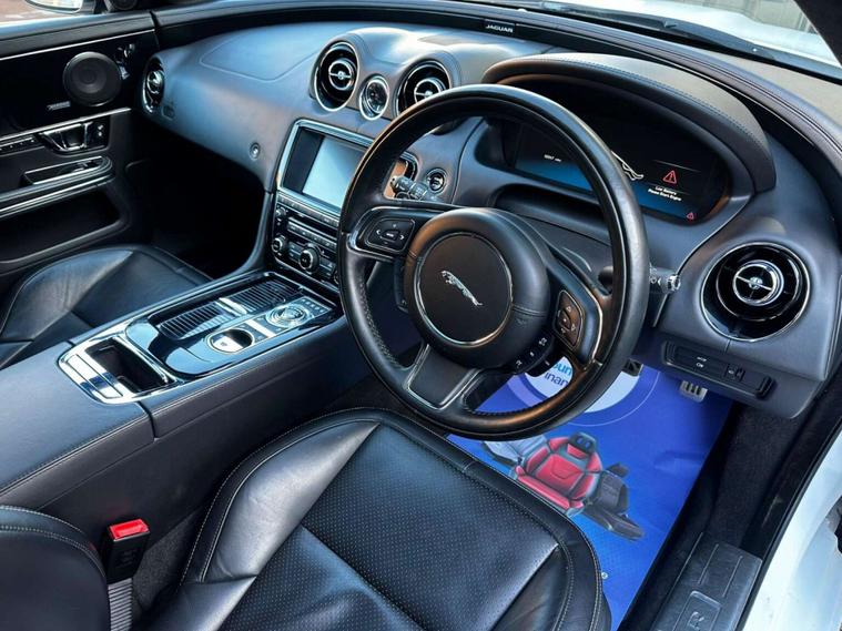 An Exceptional Low Mileage, High Spec XJ Finished in Polaris White With Black Leather Interior. Spec Includes Sunroof, Rear Camera, Sports Exhaust, 20 Inch Venom Alloys, 8 Inch Touch Screen, Adaptive Xenons, Ebony Headliner, Heated Steering Wheel, Meridian Sound, Keyelss Entry and Start, Memory Seats, Heated and Cooled Front Seats. Great Service History With 5 Completed Services.