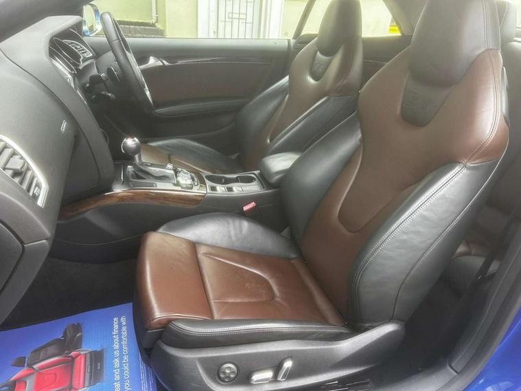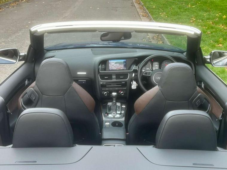 An Expceptional, Low Mileage S5 Cabriolet finished in Sepang Blue With Two Tone Leather Interior. Featuring Navigation, Heated Seats, Bang and Olefson Sound, Drive Select, Rear Camera, Front and Rear Park Distance Control, Xenon Headlamps, Daptive Cruise, DAB Radio and Ambient Lighting. Fastidiously Mainatined With 10 Recorded Services!