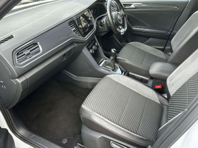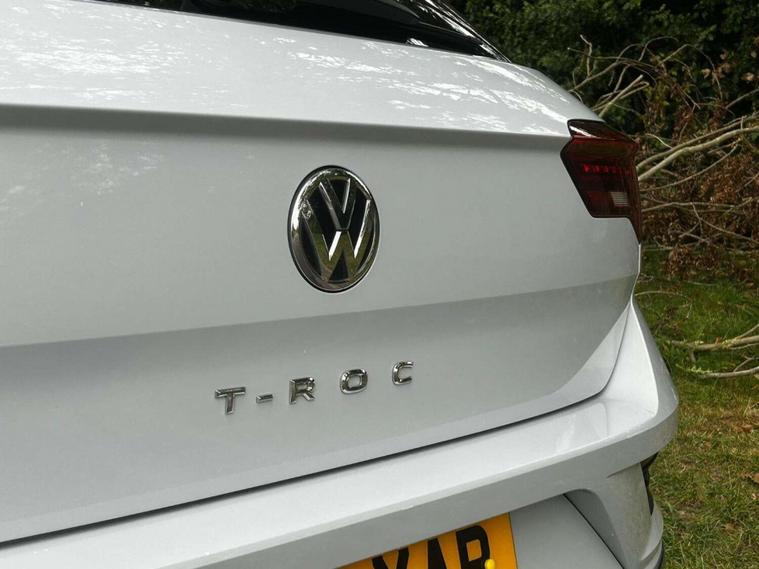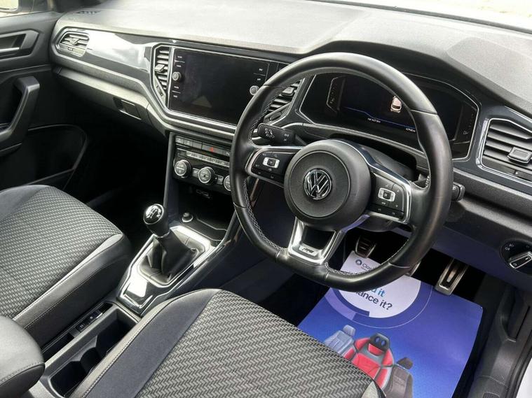 A Beautiful T-Roc R-Line Finished in White Silver Metallic With Black Leather and Cloth R-Line Interior. Featuring Discover Navigation, Heated Seats, Adaptive Cruise, Front and Rear Park Sensors, Privacy Glass, DAB Radio, Bluetooth, Cruise Control, Dynamic Steering, Drive Profile Select, Power Windows, Lane Keep System, Mirror Link,