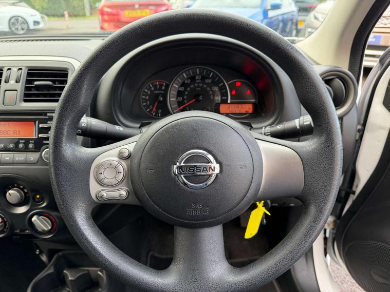 lovely Low Mileage, Bright White Nissan Micra 1.2 Vibe 5 Door; this car was originally registered to our local Nissan Dealership and then has been owned by the same person since it was 2 months old. It's presented in great overall condition and has a great Service History with 7 stamps in the service record; we have just serviced it and it's got a new MOT, so it's ready to drive away.