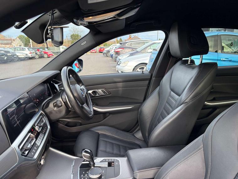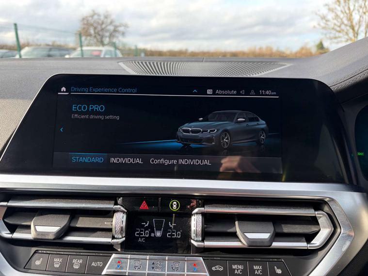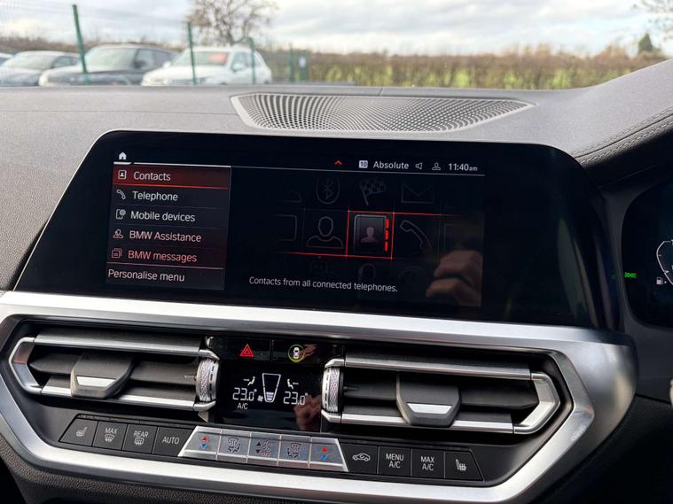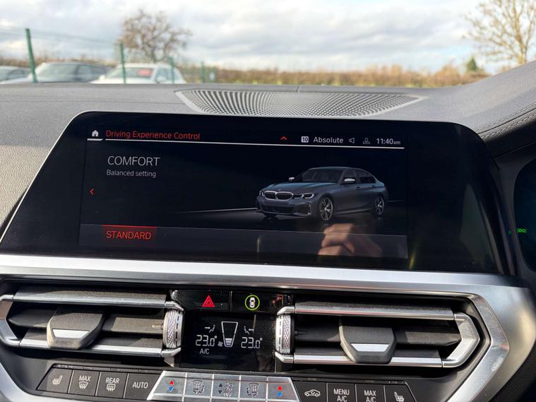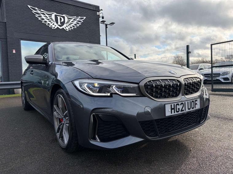 This 2021 BMW 3 Series M340i presents an exceptional opportunity with remarkably low mileage for its age, having covered just 31468 miles. This impressive saloon is equipped with a potent 3.0L Petrol Hybrid engine, delivering exhilarating performance through its Four Wheel Drive system. As a Euro 6 compliant vehicle, it meets modern emission standards. Enhancing your driving experience are the Visibility Pack, featuring advanced LED and Laser headlights, and the Comfort Pack, which includes a heated steering wheel for those cooler days. Manoeuvring is made effortless with the Parking Assistant, incorporating front and rear sensors along with a rear camera, all managed through the intuitive BMW Connected Package Professional, offering seamless integration with Android Auto and Apple CarPlay.