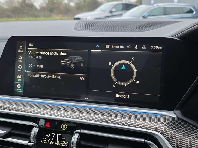 Dressed in an elegant Black Sapphire finish, this Bmw X5 exudes a timeless allure that is sure to turn heads wherever you go. Step inside to discover the sumptuous Perforated Vernasca Leather in Ivory White-Black, providing a striking contrast and an atmosphere of refined luxury.