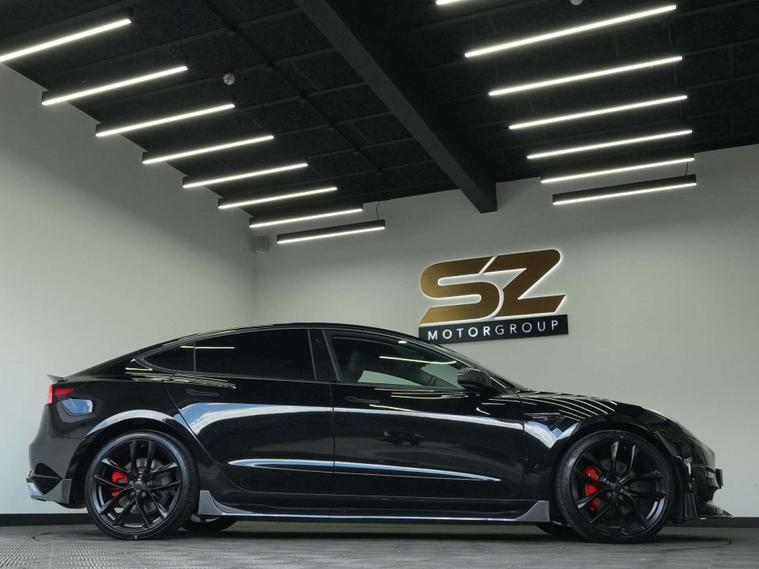 SZ MotorGroup Nottingham are pleased to offer this stunning Tesla Model 3 Dual Motor Long Range Auto AWD, REGISTRATION WR71 OXU. Presented in excellent condition throughout, this example benefits from a full carbon bodykit, 20” black alloy wheels, and a full black exterior pack, giving the vehicle a sharp, modern, and highly desirable road presence.