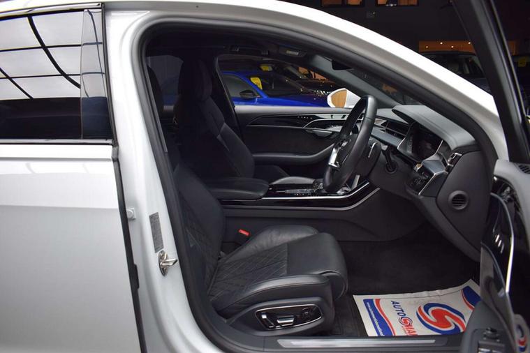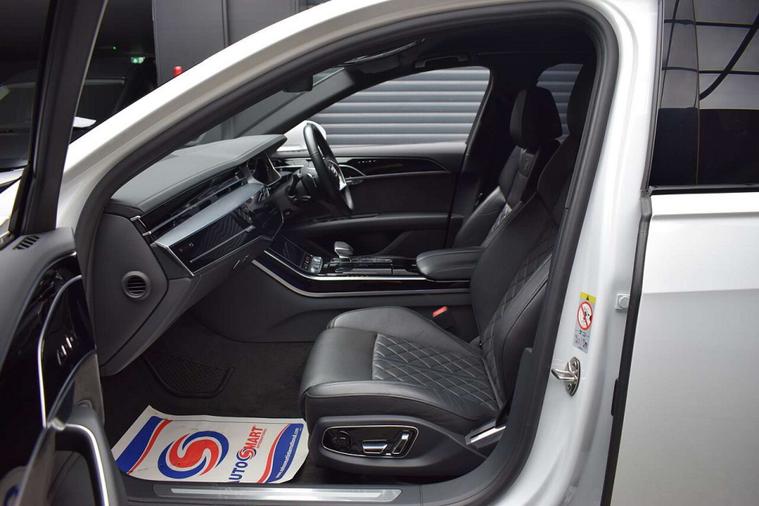 The Audi A8 comes with a range of standard features including 20in Alloy Wheels, Audi HD Matrix LED Headlights, Adaptive Air Suspension, Adaptive Cruise Control, Audi Virtual Cockpit, and much more. The optional specification includes MMI Navigation Plus, Privacy Glass, Rear-View Camera, and Sun Visors with Illuminated Vanity Mirrors.