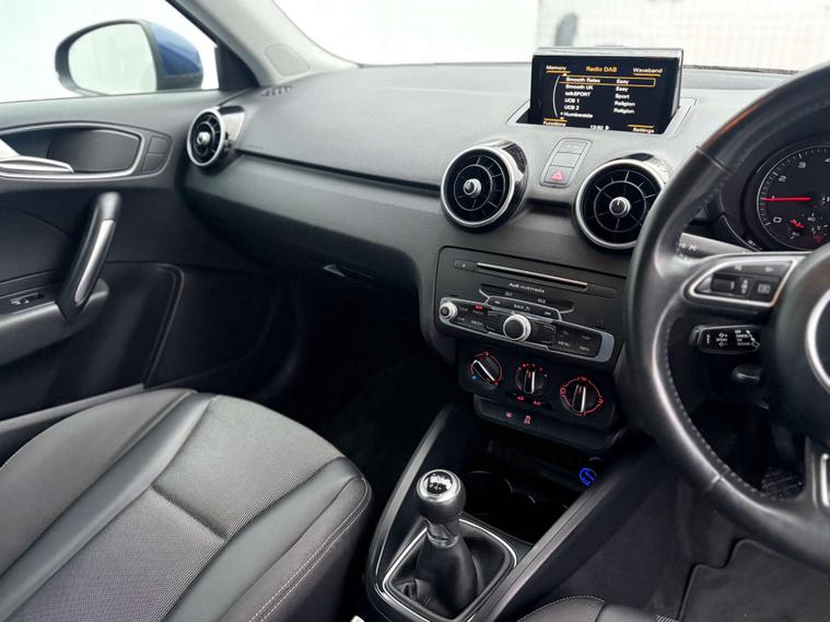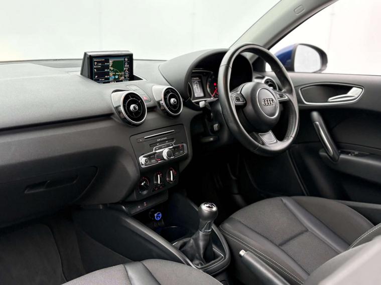 Finished in a striking Nogaro Blue, the Audi A1 is sure to turn heads wherever you go. Its sleek design is complemented by the Tornado Cloth Sport Seats in Black, offering both comfort and a touch of sophistication to your driving experience.