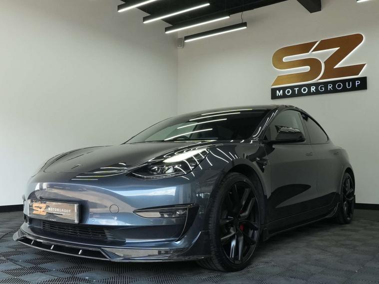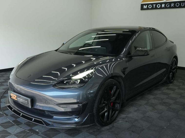 SZ MotorGroup Nottingham are pleased to offer this stunning Tesla Model 3 Dual Motor Long Range Auto AWD, REGISTRATION BT71 RYX. Presented in excellent condition throughout, this example benefits from a full carbon bodykit, 20” black alloy wheels, and a full black exterior pack, giving the vehicle a sharp, modern, and highly desirable road presence.