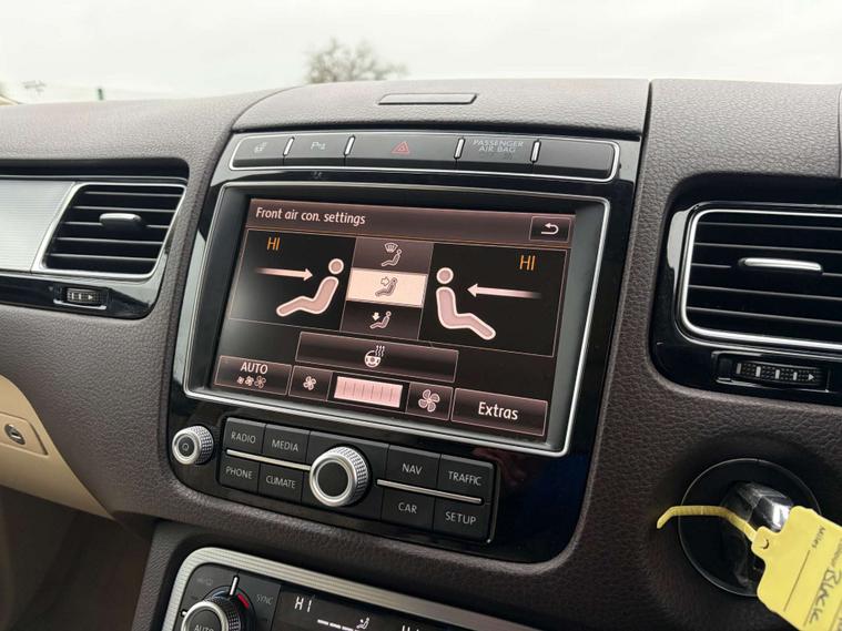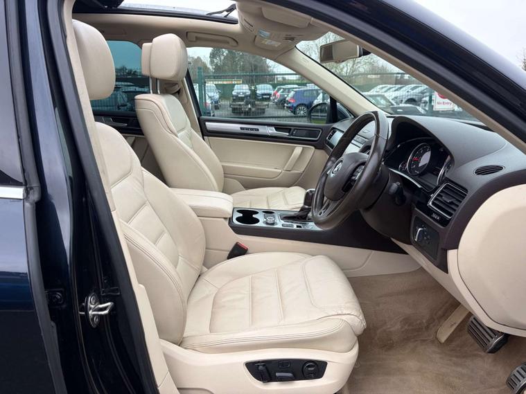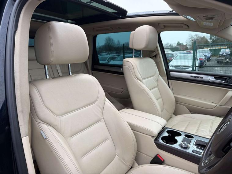 This 2015 Volkswagen Touareg TDI V6 R Line presents a compelling proposition with its exceptionally low mileage for its age, having covered just 84, 190 miles. As a Euro 6 compliant model, it features a powerful 3.0 litre diesel engine paired with a four wheel drive system, ensuring capable performance in various conditions. The R Line trim signifies a sporty and well equipped package, further enhanced by notable features such as a heated steering wheel, Bluetooth connectivity for hands free calls, rear parking sensors for easier manoeuvring, keyless entry for convenience, and heated front seats for added comfort. A clear vehicle history check provides peace of mind regarding its provenance.