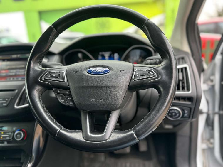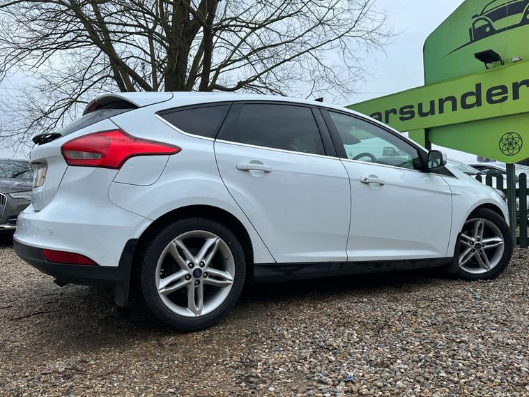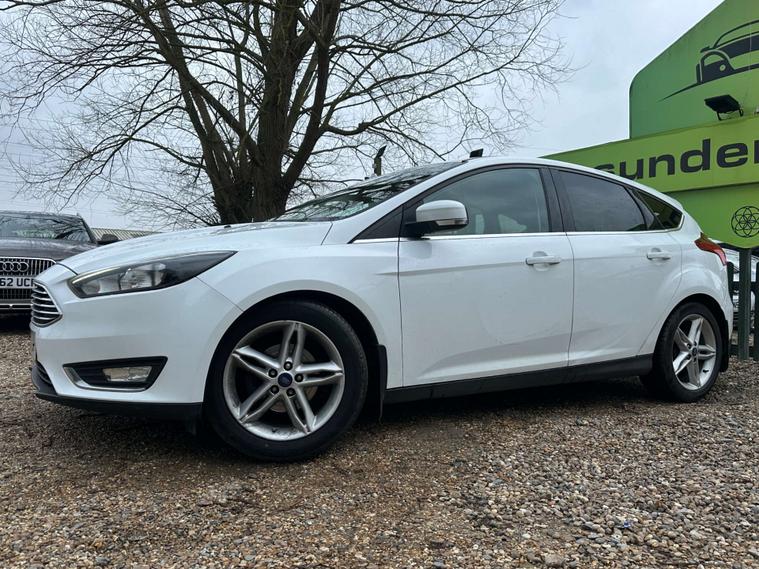 Automatic / Petrol / 5 previous owners / low milage This 2015 Ford Focus Titanium is a superb example of a well maintained vehicle. Powered by a 1.6 litre petrol engine, this Euro 6 compliant model offers an efficient and smooth driving experience. The Titanium trim level ensures a host of desirable features are included as standard, such as dual zone electronic automatic climate control for personalised comfort, rear parking sensors to aid manoeuvrability, and automatic headlights that adjust to changing light conditions. Stay connected on the go with the integrated Bluetooth handsfree phone system.