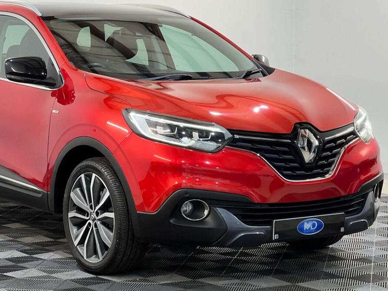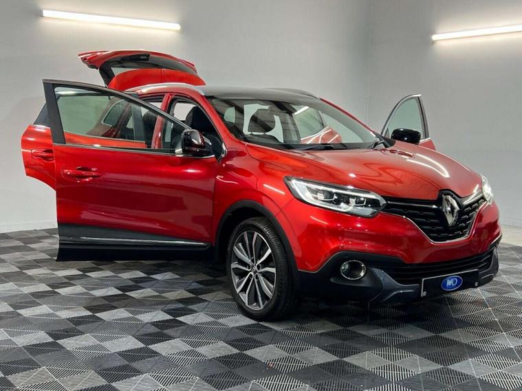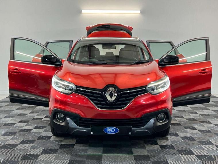MD CarStore are proud to showcase this stunning Renault Kadjar 1.3 TCe Signature Nav having covered only 32, 405 miles and hosting a fantastic specification including Satellite Navigation, Panoramic Sunroof, Bluetooth, DAB Digital Radio, Cruise Control, Front and Rear Parking Sensors with Half Leather Sports Interior, Isofix Connection Points plus so much more. The Kadjar has clearly been well cared for and comes complete with a documented service history record, complete book pack, 2 keys, a fresh service, a new MOT and 12 months AA Roadside Assistance. This car looks great on the road Finished in Flame Red Metallic with Privacy Glass and 19-inch Freshly Refurbished Diamond Turned Alloy Wheels. The 1.3 TCe engine produces a smooth yet punchy drive with plenty of power and married to a 6 speed manual gearbox makes it a very economical drive. The Kadjar is a stylish yet functional 5 door family SUV with superb handling and comfort. With a combined 47+ MPG, £190 per year road tax and a low insurance group, this car is sure to make a great addition to any household looking for low cost motoring without compromising on spec, quality or comfort. We offer top prices for all part exchange vehicles and finance is available to suit all budgets and criteria.**THIS CAR IS ALSO ULEZ COMPLIANT**