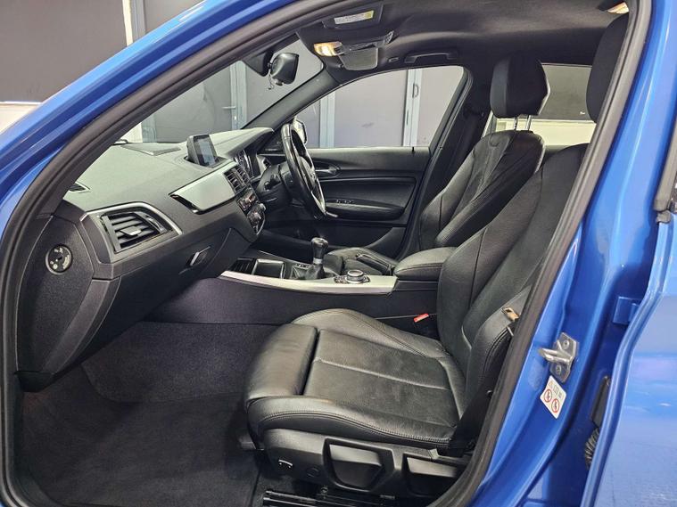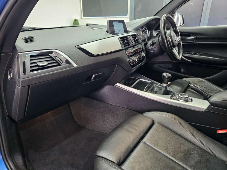 Equipped with luxurious Dakota Leather in Black with a Black Interior, this BMW 1 Series also features the Estoril Blue exterior and Brushed Aluminium interior trim with Black High-Gloss Finisher, adding a touch of sophistication to the already impressive design.