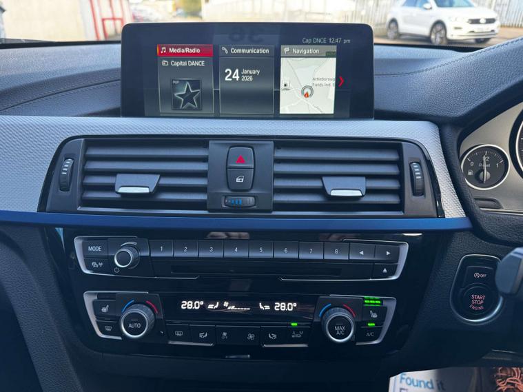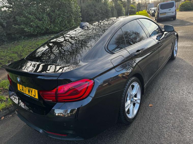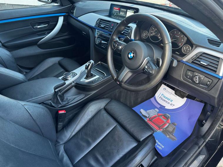 F36 Gran Coupe LCI Finished in Black Saphire Metallic With Black Dakota Leather Interior. Featuring Sports Auto Gearbox, Heated Seats, Park Distance Control, Hexagon Blue Mats, Cruise Control, Pro Navigation, DAB Tuner.