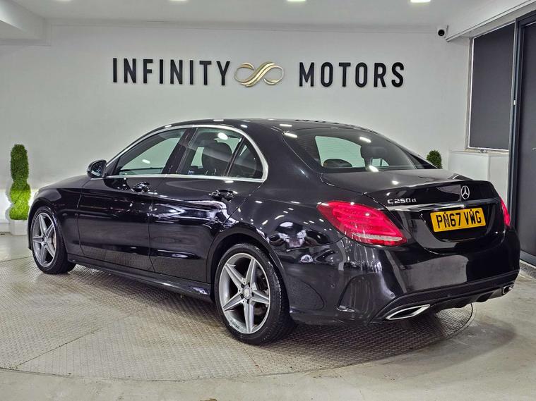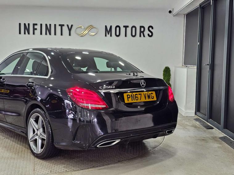 Infinity Motors presents the luxurious Mercedes-Benz C-Class 2.1 C 250 AMG Line D Auto 4dr. This stunning vehicle, finished in sleek Black, exudes sophistication and style.