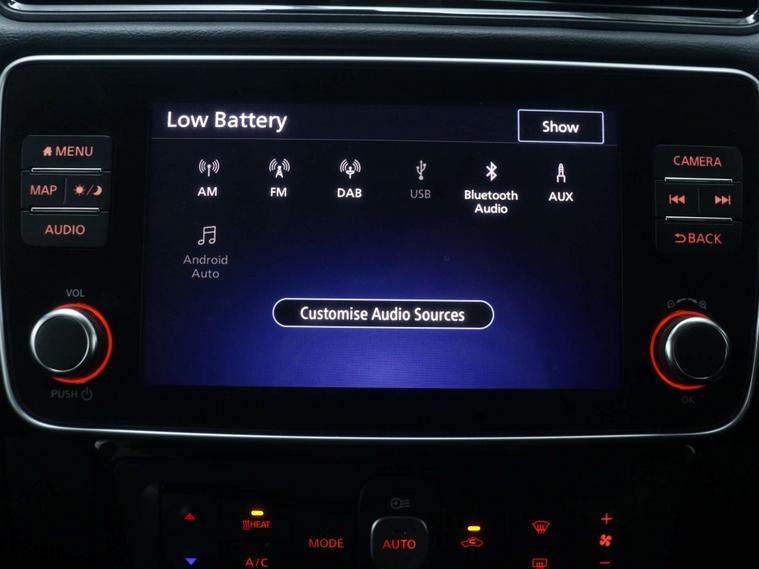 features Include –Nissan Connect EVO 8in Touchscreen Navigation and Entertainment System, Android Auto and Apple CarPlay, BOSE Premium Audio System with 7 Speakers, Rear View Camera, Lane Departure Warning, Blind Spot Warning, Intelligent Cruise Control, Body Coloured Door Mirrors with Integrated LED Indicators, Front and Rear Electric Windows, Electric Folding Door Mirrors, Automatic Air Conditioning, Heat Pack, 17in Alloy Wheels