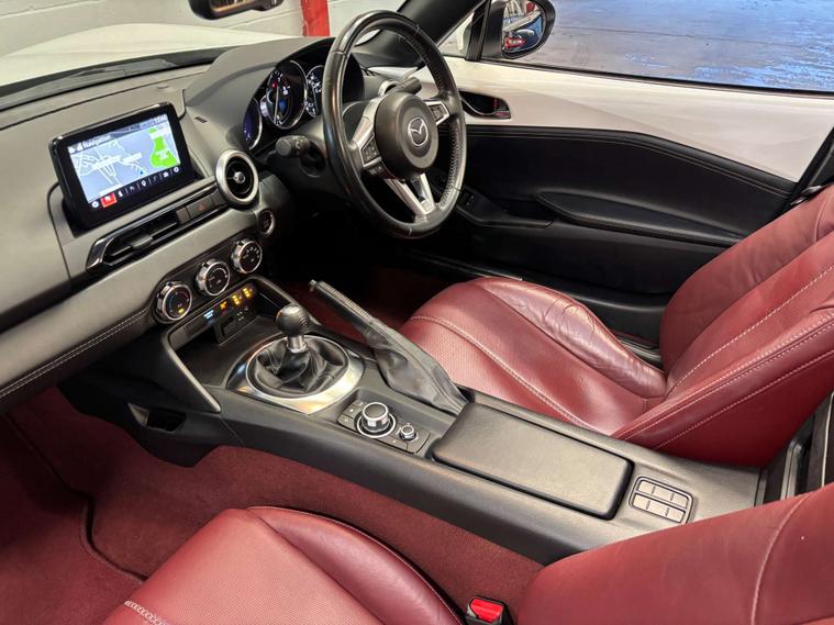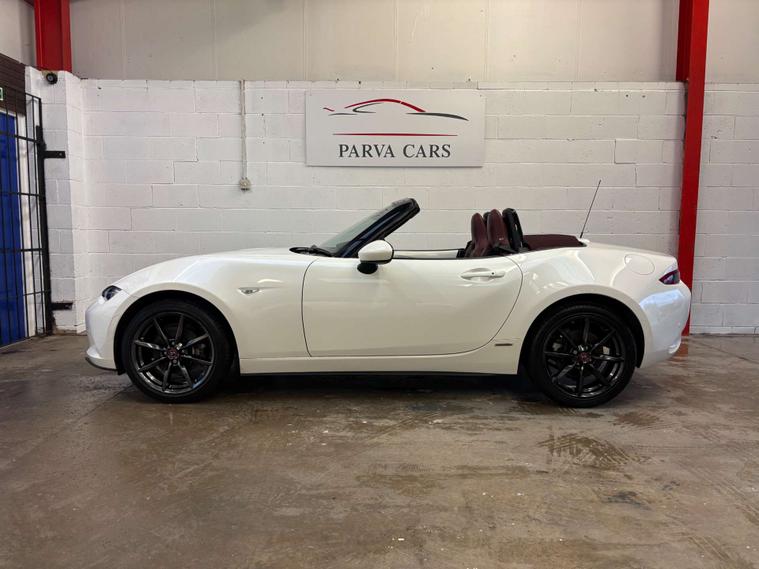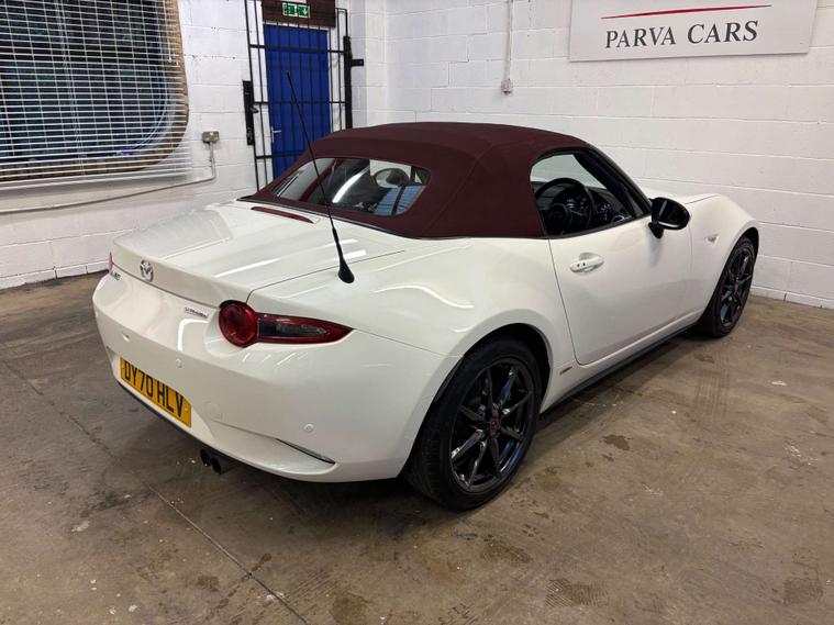 The 2020/2021 Mazda MX-5 100th Anniversary Edition honours the 1960 Mazda R360 Coupe with Snowflake White Pearlescent paint work with Dark Cherry roof. Limited to 100 UK units, it features 184hp 2.0L engines, Burgundy leather upholstery, and unique 100th-anniversary badges. The 100th Anniversary Edition is considered highly collectible due to its limited production run, with only 100 examples originally available in the UK market. We Specialise selling MX-5's, check out our website for our up to date stock list. This MX-5 will be Supplied with a comprehensive 6 Month Unlimited Mileage Warranty a used car check and new MOT plus 12 months free AA breakdown cover. We offer Competitive Finance subject to status please call for a quotation or log onto our website to use our Finance Calculator. One owner from new with full Mazda Service history. It has Heated front seats. Satellite Navigation, Bluetooth Phone and Bose Hi Fi. Bluetooth Audio. Apple Car play and Android Auto. Cruise control or speed limiter. Multi function computer. Cupholders. Automatic Air conditioning. Multi function steering wheel. Lane Assist. Rear Parking Sensors and rear view camera. Rain sensing wipers and automatic dipping rear view mirror. Electric wing mirrors. Automatic LED Headlights. Keyless entry and ignition. Refurbished 17" alloy wheels. Limited Slip Differential. Immaculate condition throughout. Hpi Clear. Part Exchange Welcome. We are located in Cwmbran by appointment only, please contact Chris to book your appointment:- Call-Text or WhatsApp 01633922672.