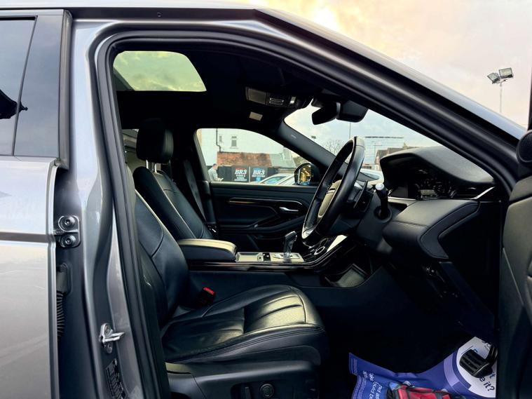 Finished in a sleek Eiger Grey, this Land Rover Range Rover Evoque is a true head-turner. Its exterior is further enhanced by the Black Exterior Pack and 20-inch Alloy Wheels in Gloss Sparkle Silver, ensuring you make a statement wherever you go.