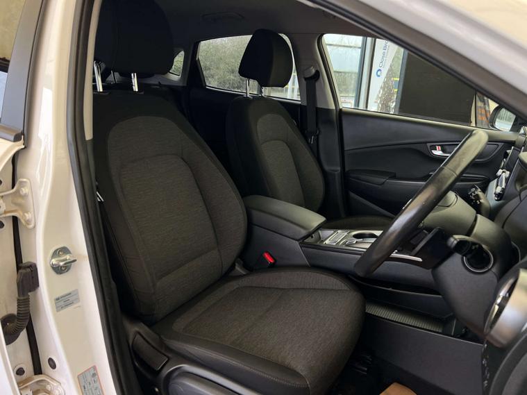 Dressed in a pristine Atlas White finish, the Hyundai Kona is a head-turner on every road. Its sleek design and modern aesthetics make it a standout choice for those who appreciate both form and function. The Kona's electric powertrain ensures a smooth, quiet ride, while its impressive range means you can go further with fewer stops.