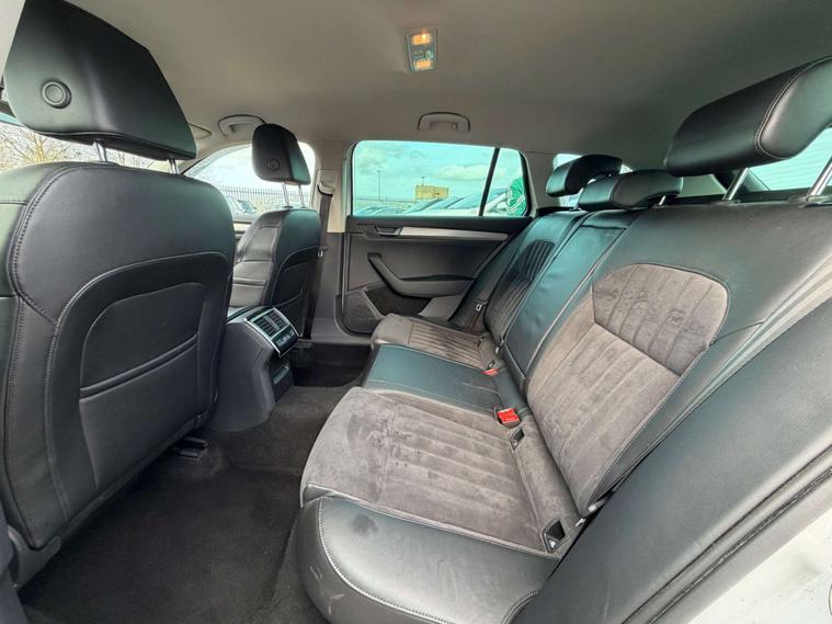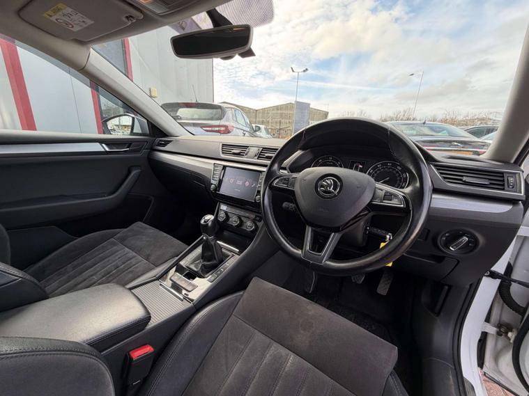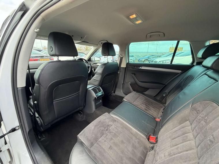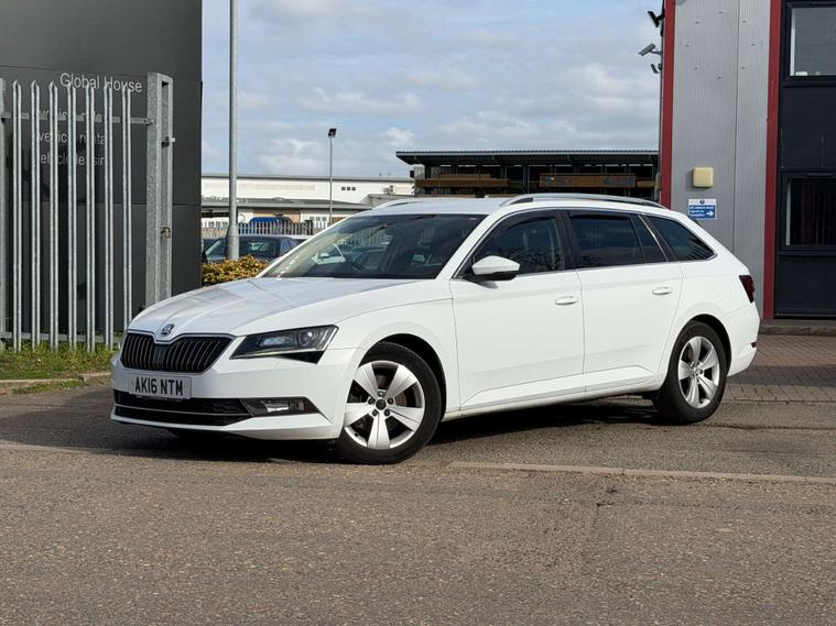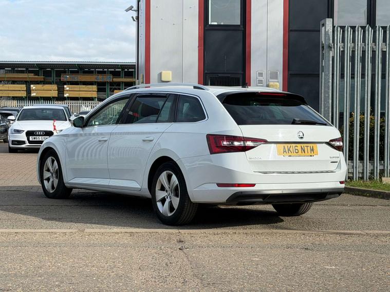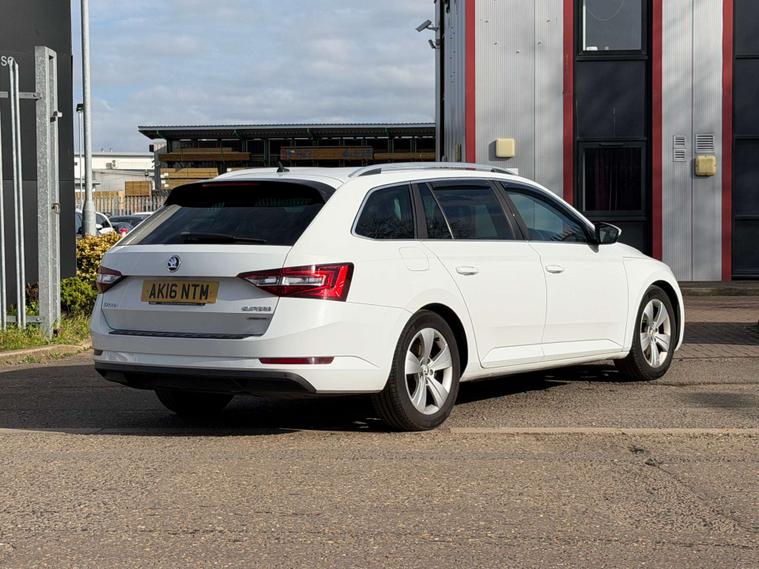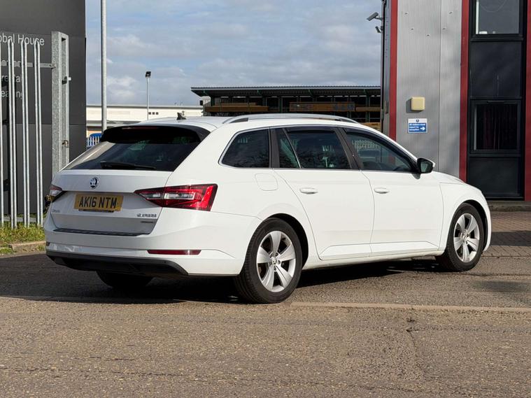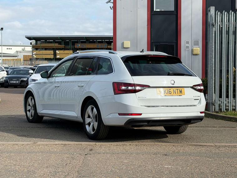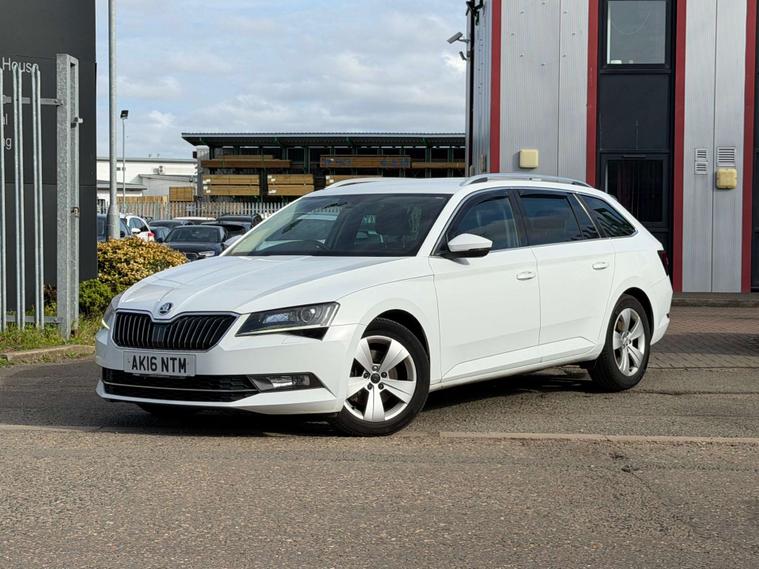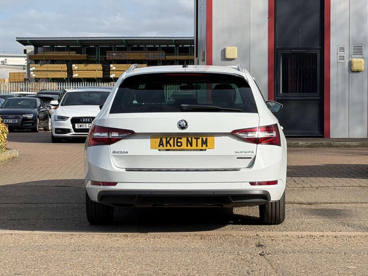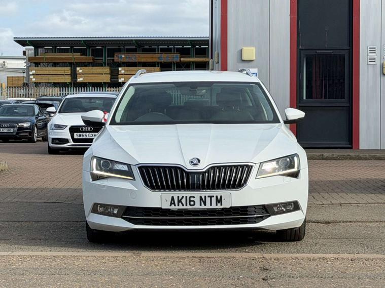 Introducing the Skoda Superb 1.6 TDI GreenLine SE L Executive Estate 5dr Diesel Manual Euro 6 (s/s) (120 ps) in a sleek White finish. This executive estate car is the epitome of style, comfort, and efficiency.