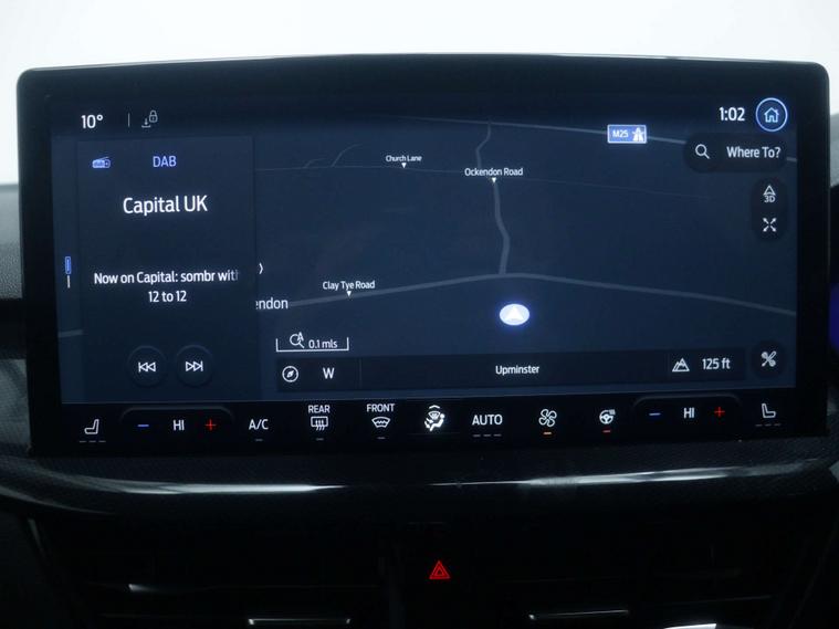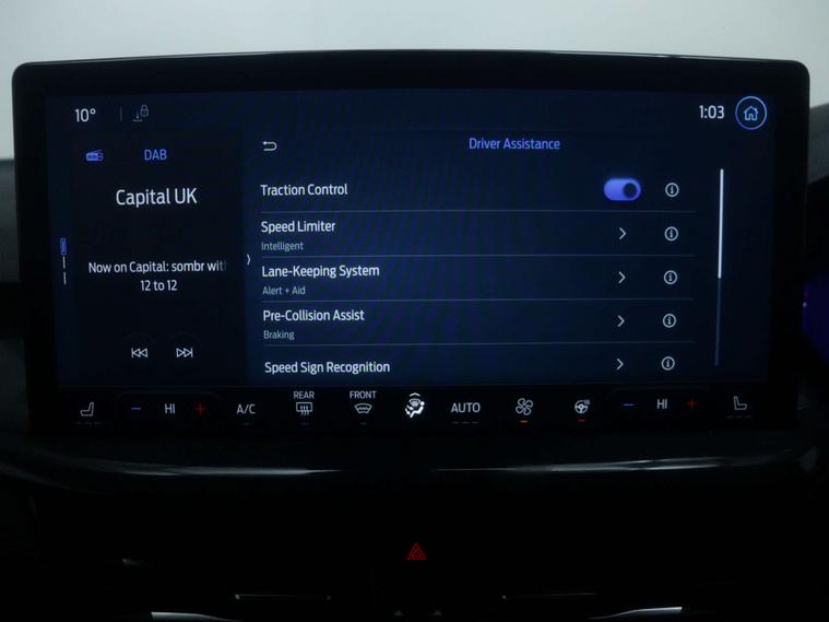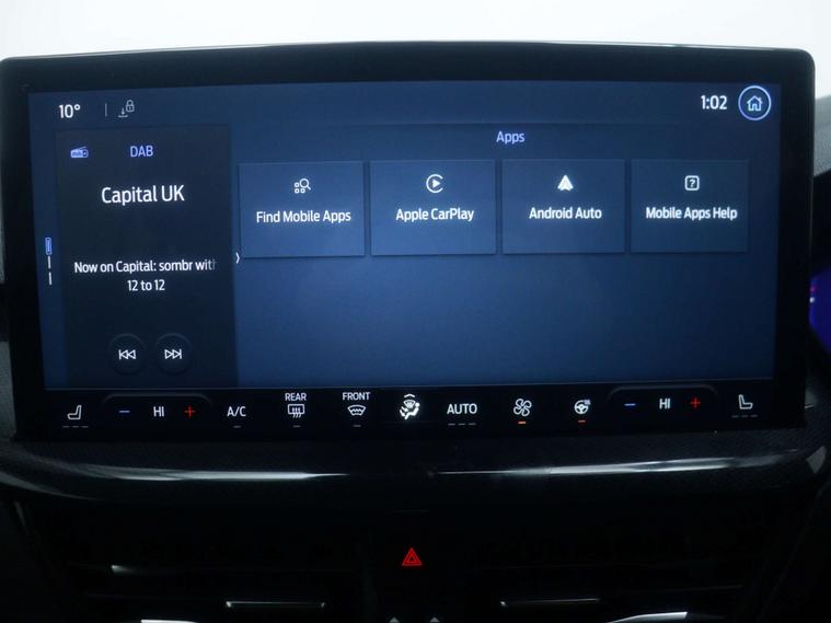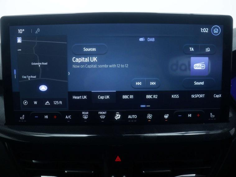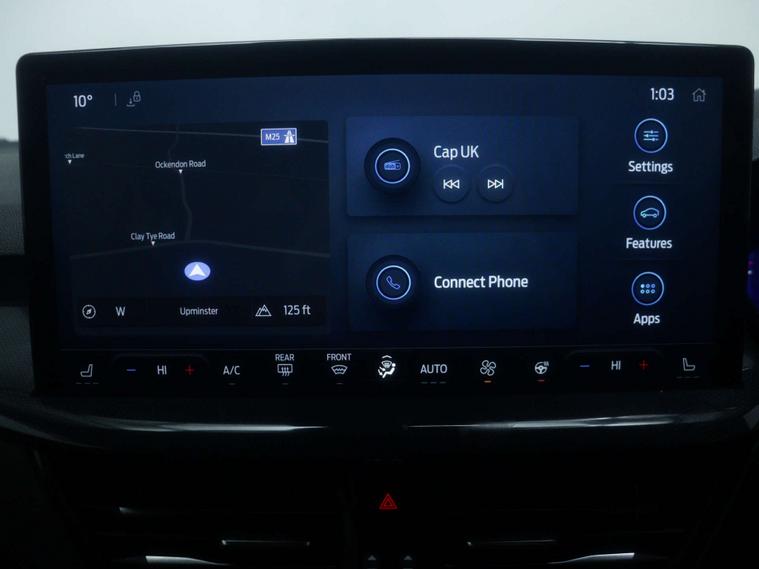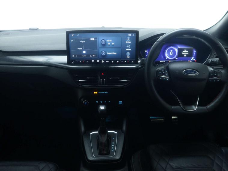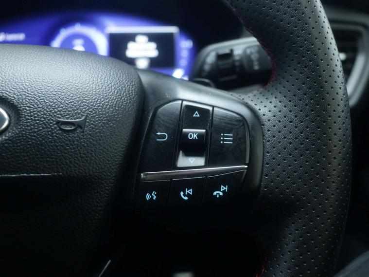 Features include - Ford SYNC4 Navigation, DAB Radio, Bluetooth, 13.2in Touchscreen, Wireless Charging, Cruise Control with Adjustable Speed Limiter, Pre-Collision Assist, Parking Sensors - Front and Rear, Trip Computer, 18in Alloy Wheels - 5x3 Spoke, Ford Easy Fuel System, Quickclear Heated Windscreen, Full LED Headlights, Dual-Zone Temperature Control, Power 4-Way Driver Seat Adjust, Full Sensico upholstery - Ebony with Red Stitching, Hill Start Assist, Lane-Keeping Aid with Lane-Keeping Assist and Trailer Sway Control.