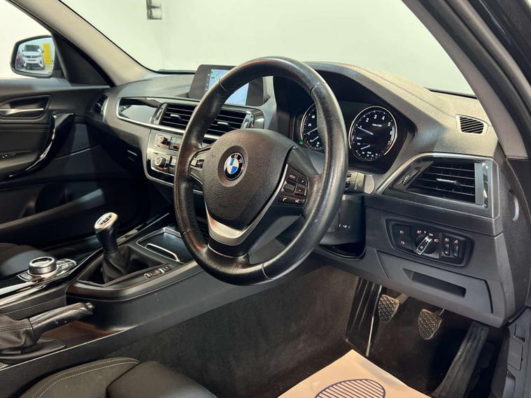MD CarStore are proud to showcase this stunning BMW 118i Sport having covered only 43, 662 miles and hosting a fantastic specification including Satellite Navigation, Bluetooth, DAB Digital Radio, USB Connection, Sport styling and Interior, Isofix connection Points and so much more. The 1 Series has clearly been well cared for and comes complete with a service history record, complete book pack, 2 keys, a fresh service, a new MOT and 12 months AA Roadside Assistance. This car looks great on the road Finished in Black Metallic paint with Freshly Refurbished Diamond Turned Alloy Wheels and LED Daytime Running Lights. The 1 Series is a stylish yet functional 5 door family hatchback and the 1.5 petrol engine produces a smooth yet punchy drive with plenty of power whilst being able to achieve a combined MPG of 53+ and only £195 per year road tax. This car is sure to make a great addition to any household and would certainly be well suited to someone looking for economical motoring without compromising on style, quality or specification. We offer top prices for all part exchange vehicles and finance is available to suit all budgets and criteria.
